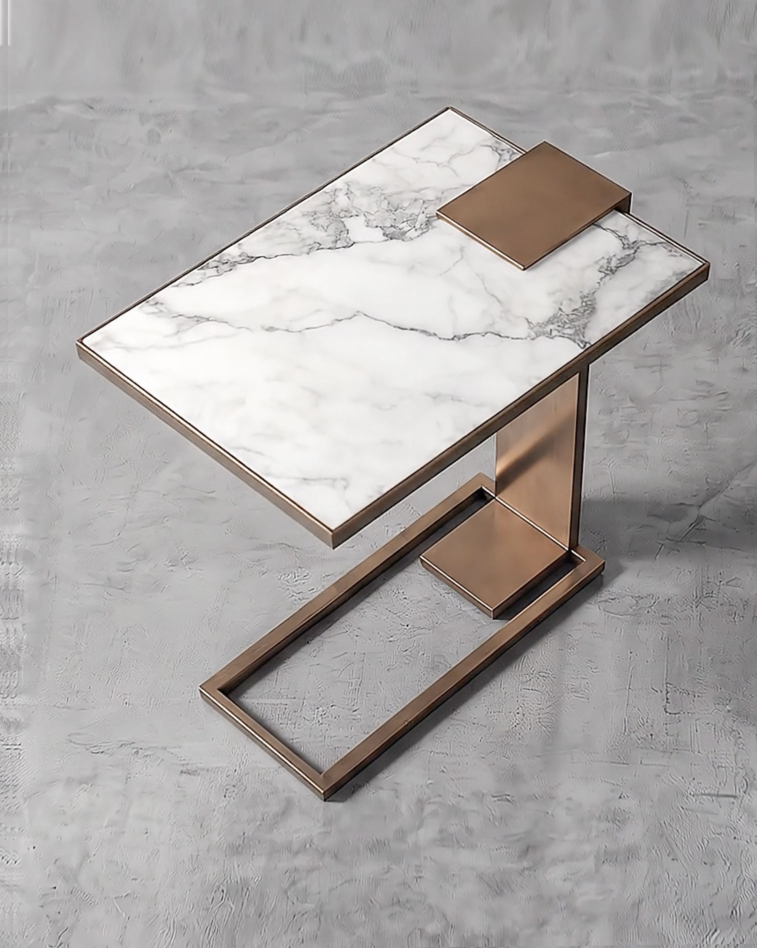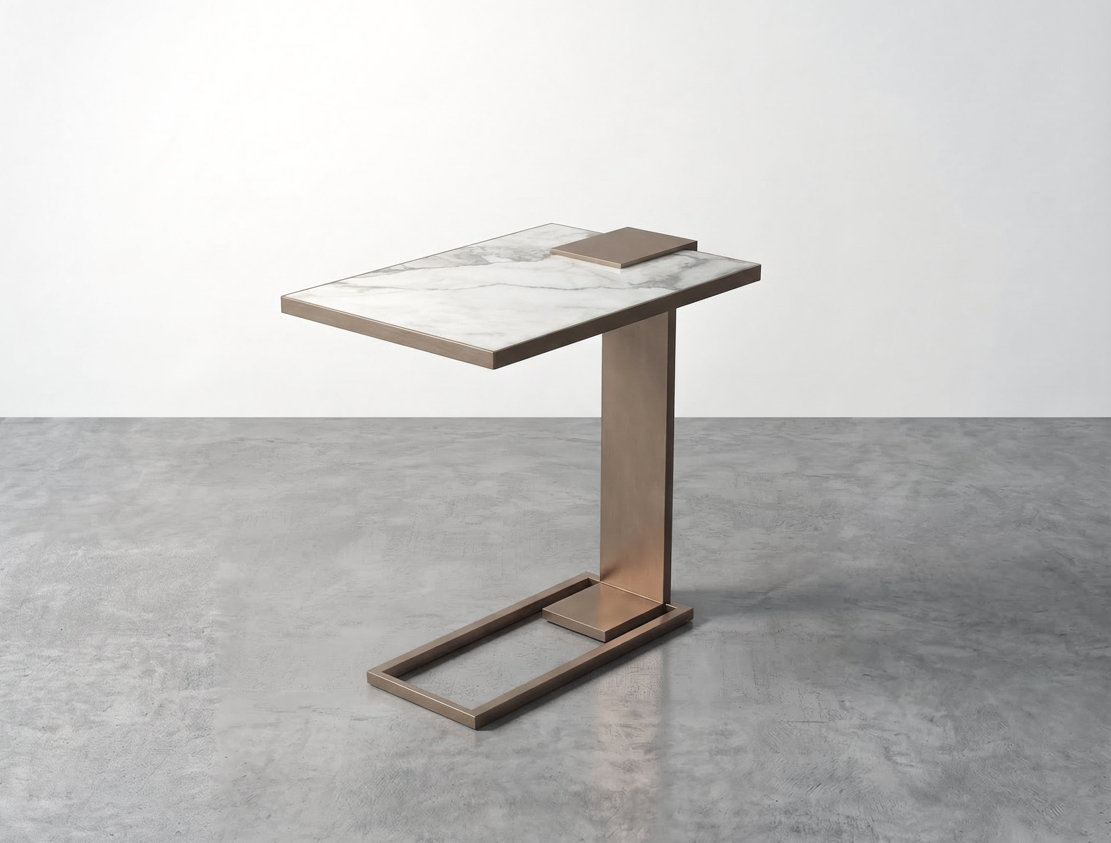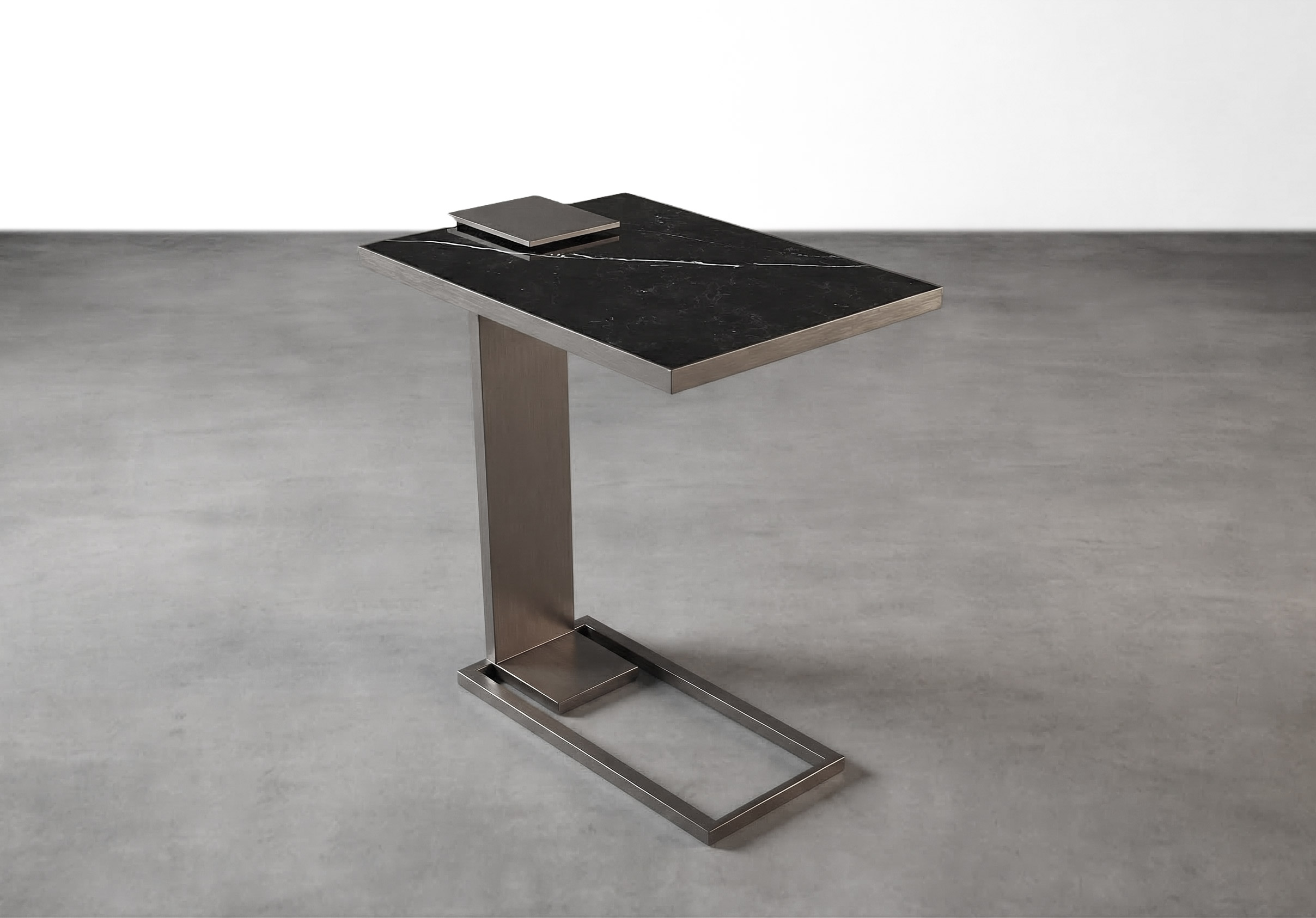 Sofa side table available in all Robicara metal patinas and marbles, perfect fit for any residential and commercial interiors, available with glass top