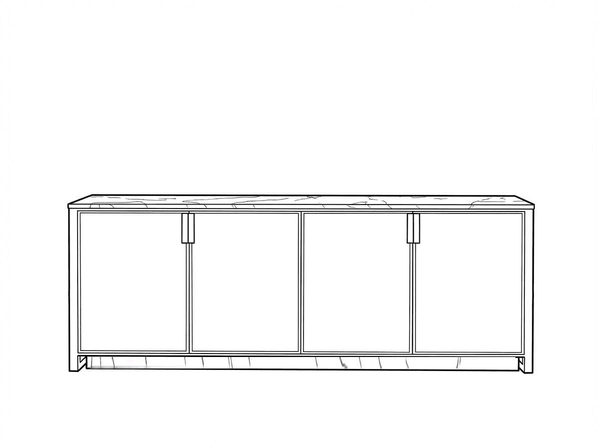 Architectural lines and richly patinated surfaces define the Gaia Credenza. Framed in bronze-finished metal and crafted with meticulous attention to detail, it offers refined storage with a timeless, sculptural presence