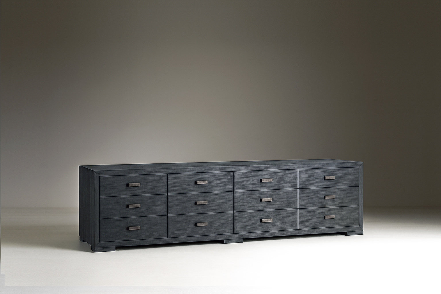 A classic dresser shown in walnut aged patina, available in all Robicara woods, and metal patina handles