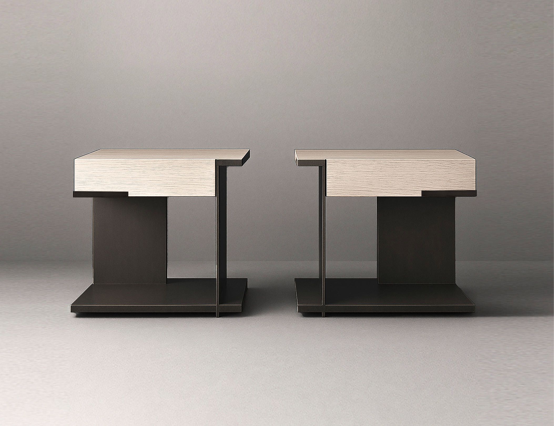 Elevate your space with the Part the Edizioni Collection’s nightstand. Available in a range of Robicara metal patinas and woods, this modern piece effortlessly complements any interior style. Its sleek design adapts seamlessly to diverse aesthetics, and for added functionality, it’s also offered as a console with a drawer. The subtle yet luxurious metal plate detail enhances the richness of this versatile furniture. Redefine your space with the contemporary elegance of the Edizioni nightstand