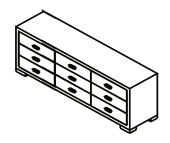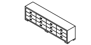 W : 108” / 2738 mm  D : 20” / 507 mm  H : 29 1/2 ” / 748 mm
