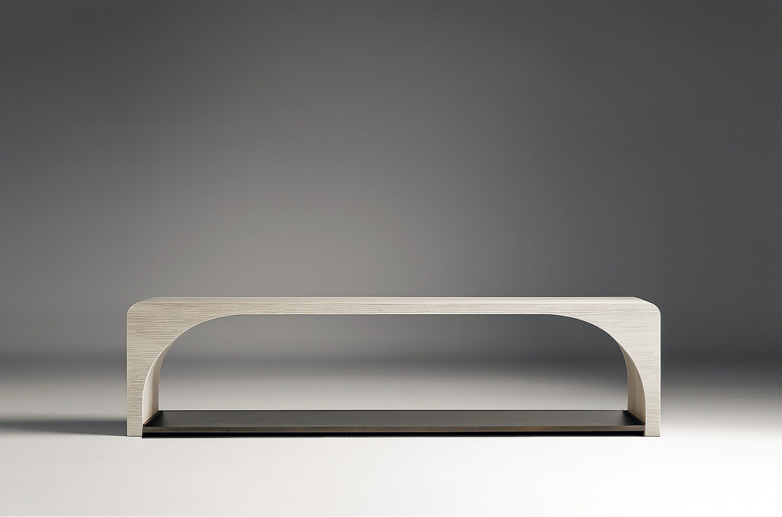 The Ita Console is a uniquely shape in metal liquid lacquer,