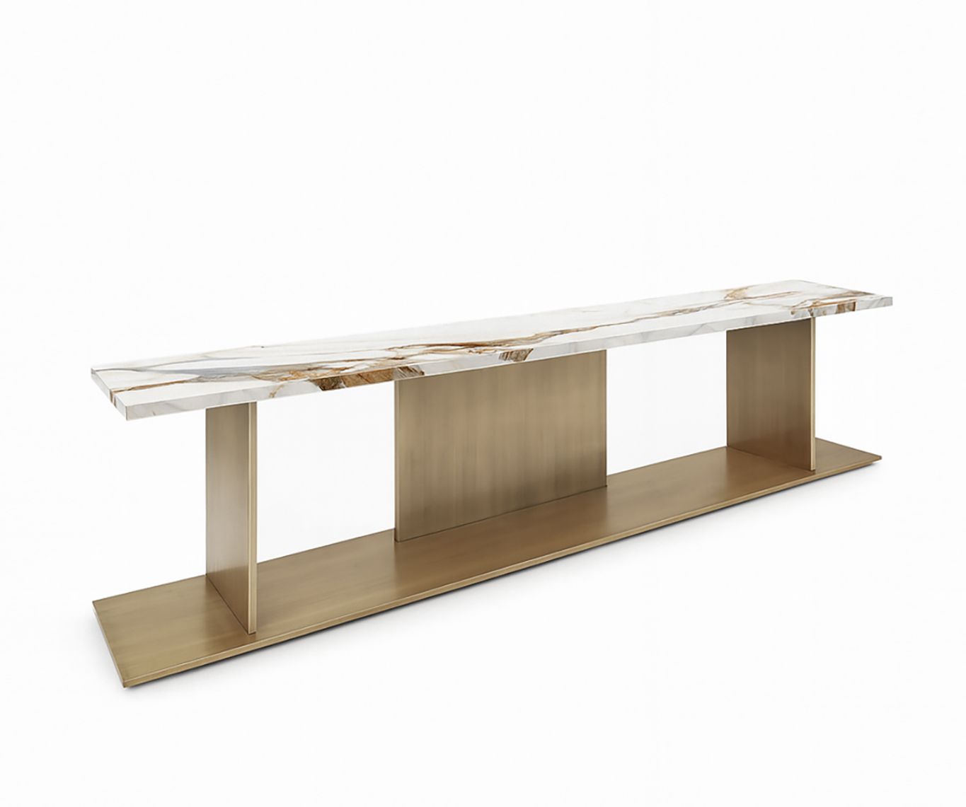A bold blend of luxury and modern design, the Poli Console features a striking marble, paired with a sculptural metal base in a rich patina finish. Perfect for entryways or living spaces, it brings timeless elegance and strength to any interior.