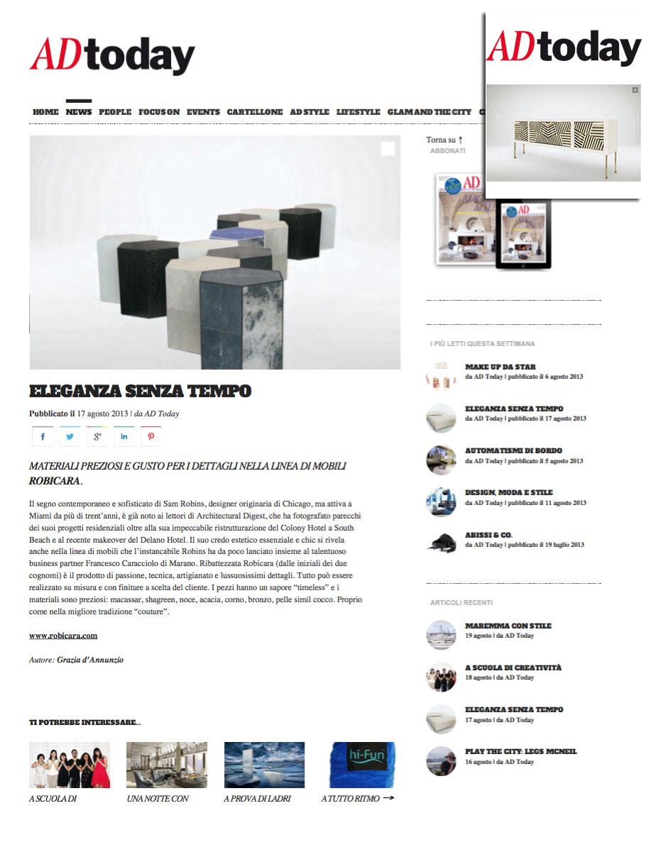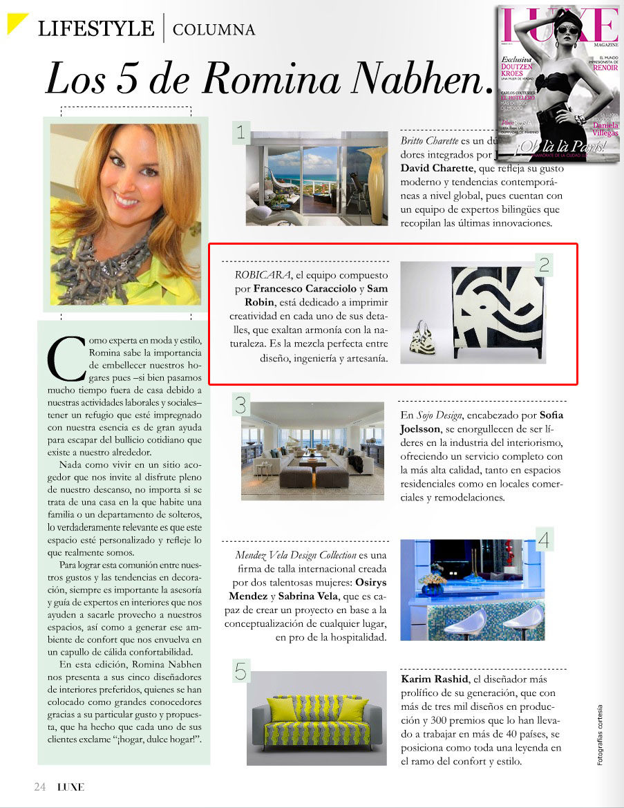 Sirio Inc positions Robicara as a partner, not just a supplier, to top interior designers and architects worldwide.