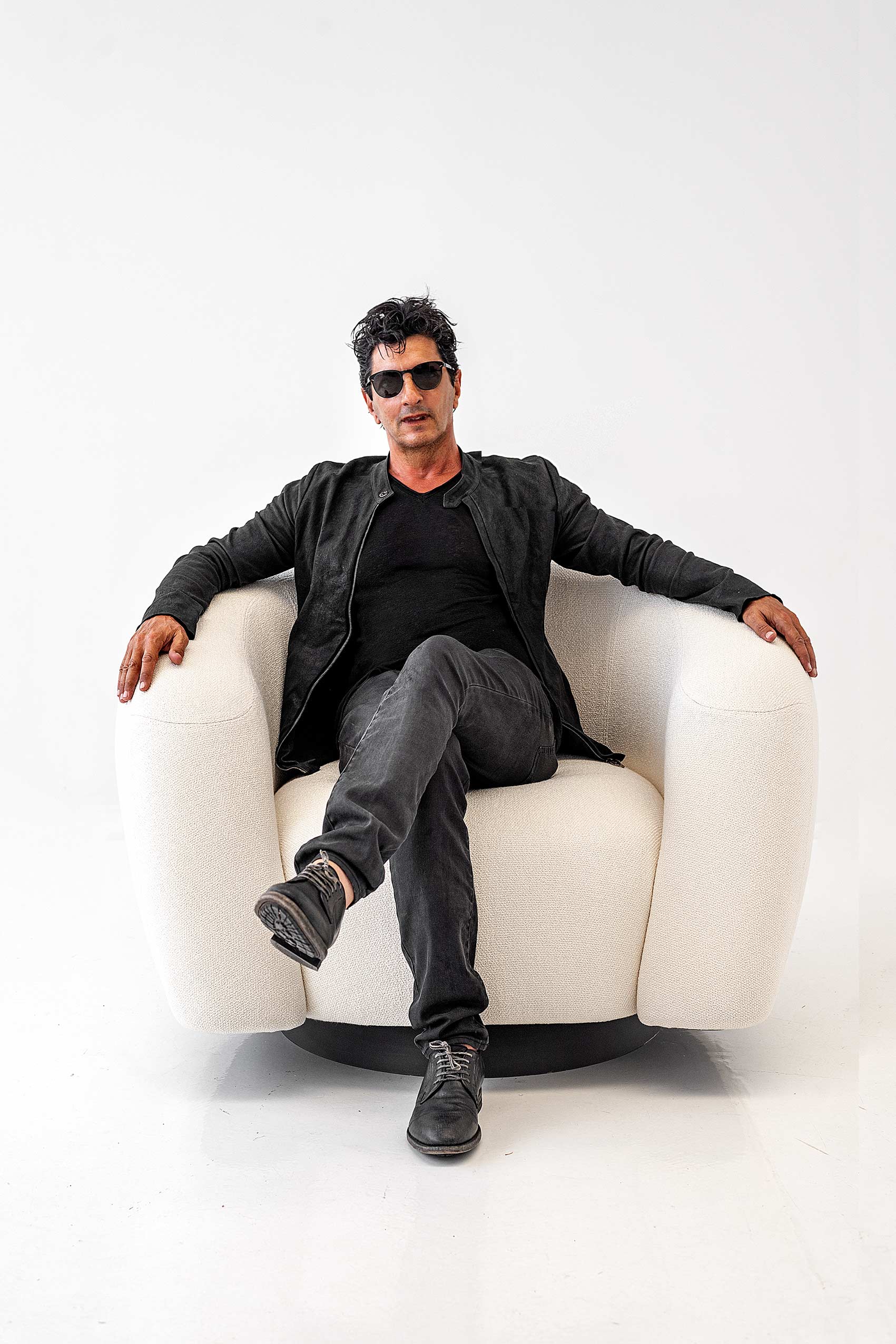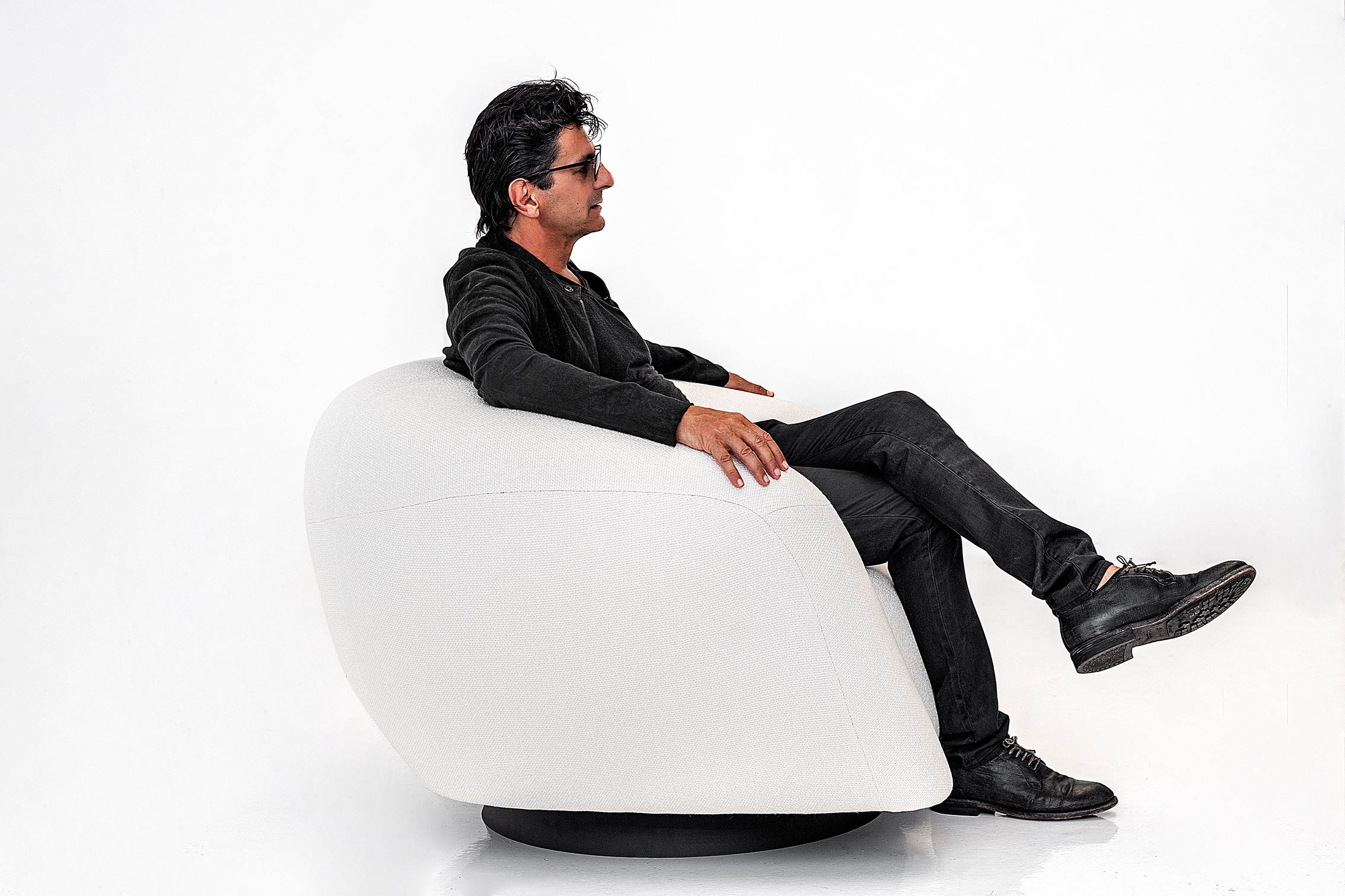 Dama lounge chair embodies contemporary elegance with surprising design angles. Its bold and modern silhouette captures the eye, while the combination of clean lines and fluid curves adds a touch of sophistication. Fixed base or with a swivel option, available in standard and extra large size.