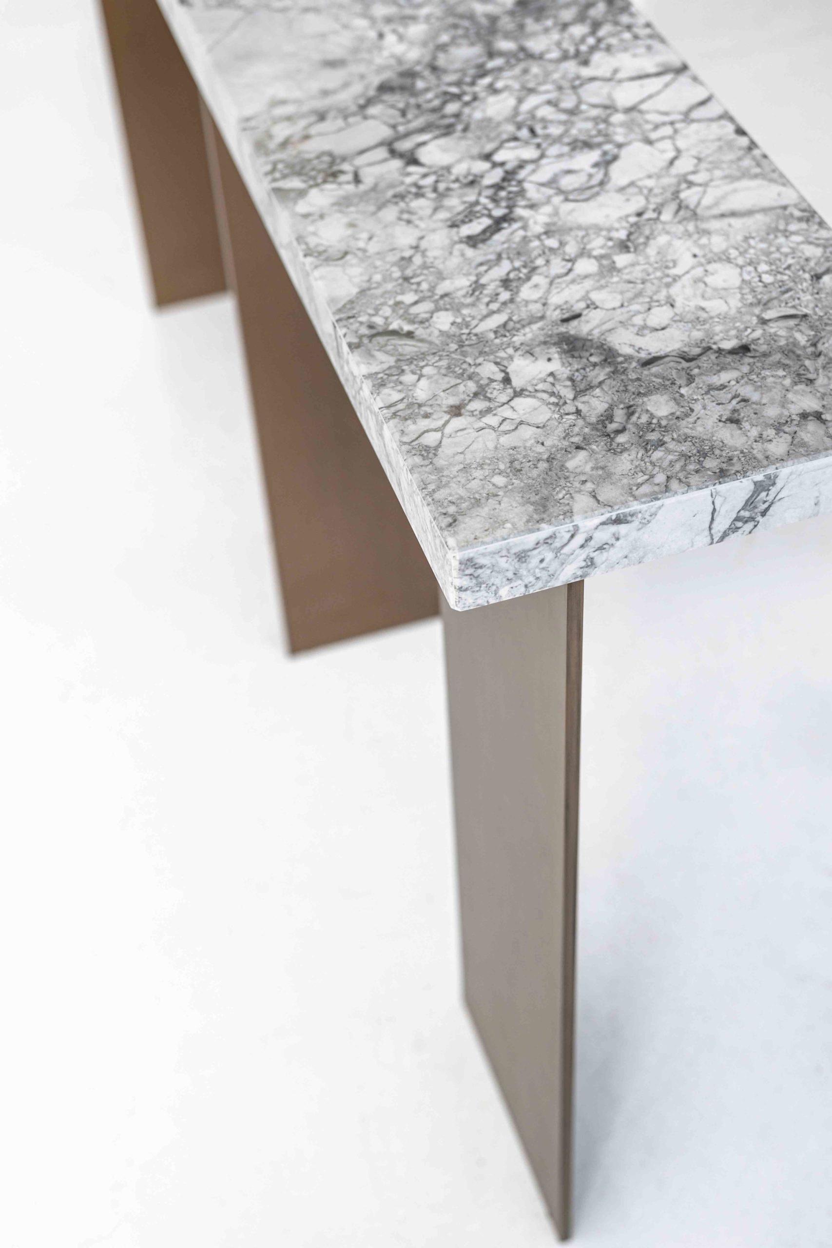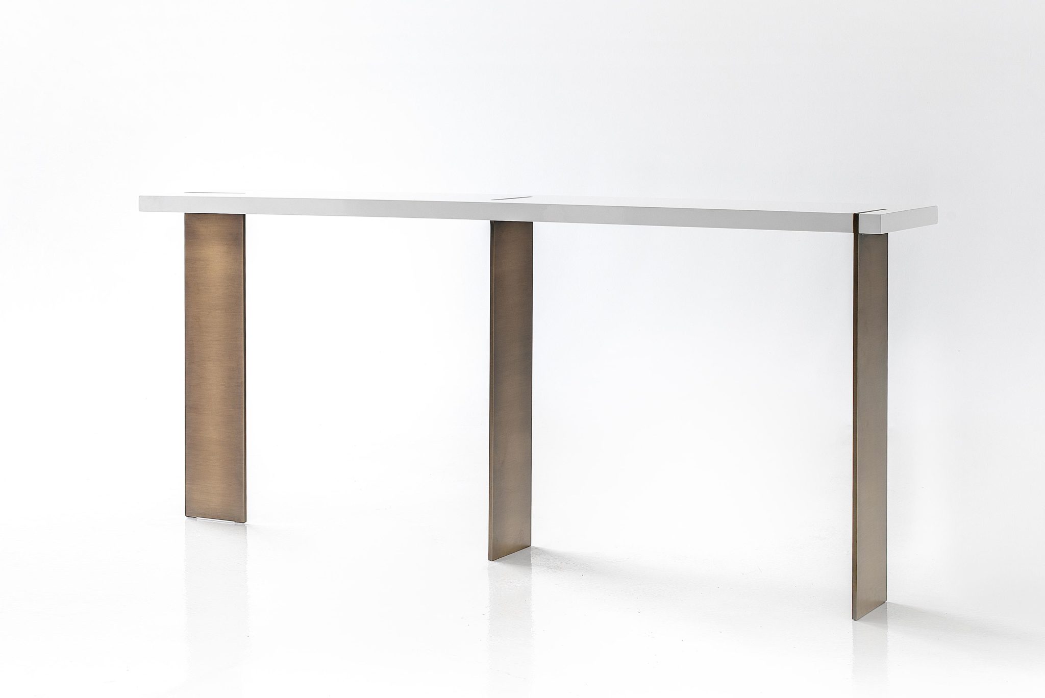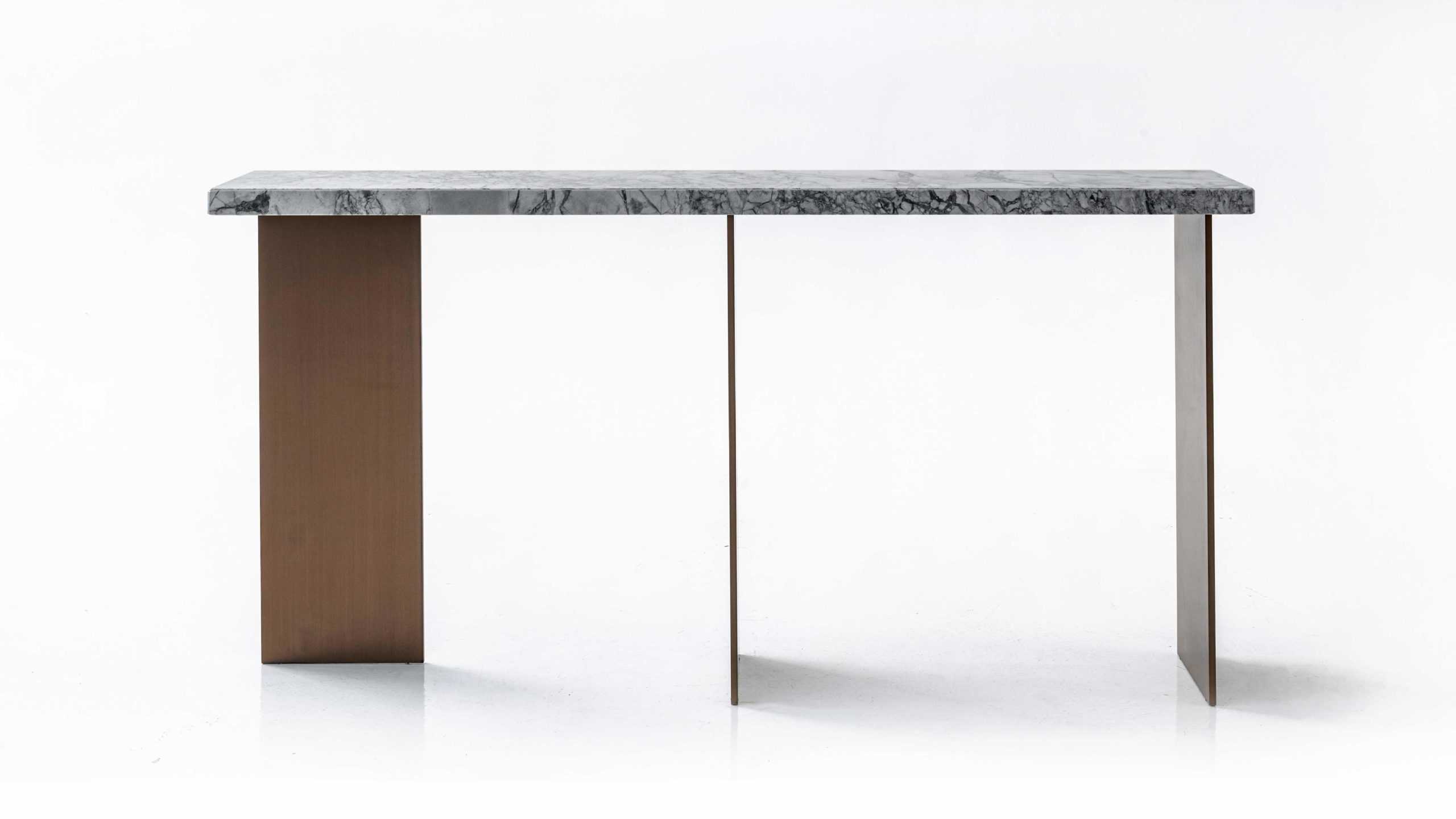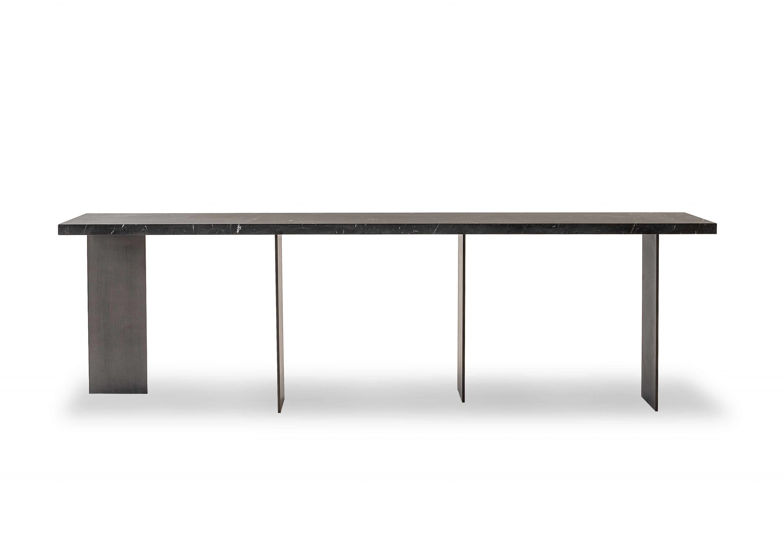Top in wood, lacquer or marble. Metals legs exposed on the wood top highlights the expert craftsmanship.