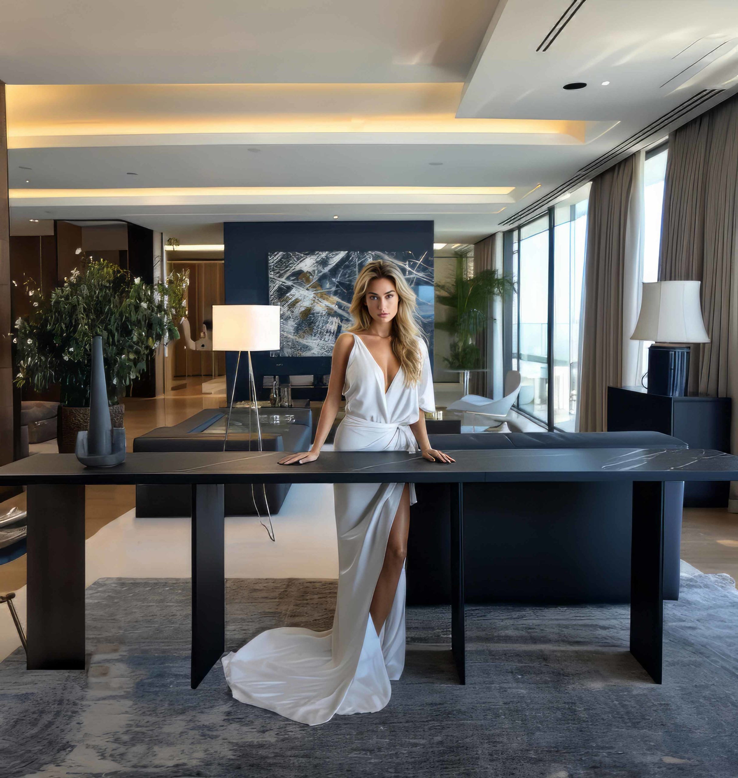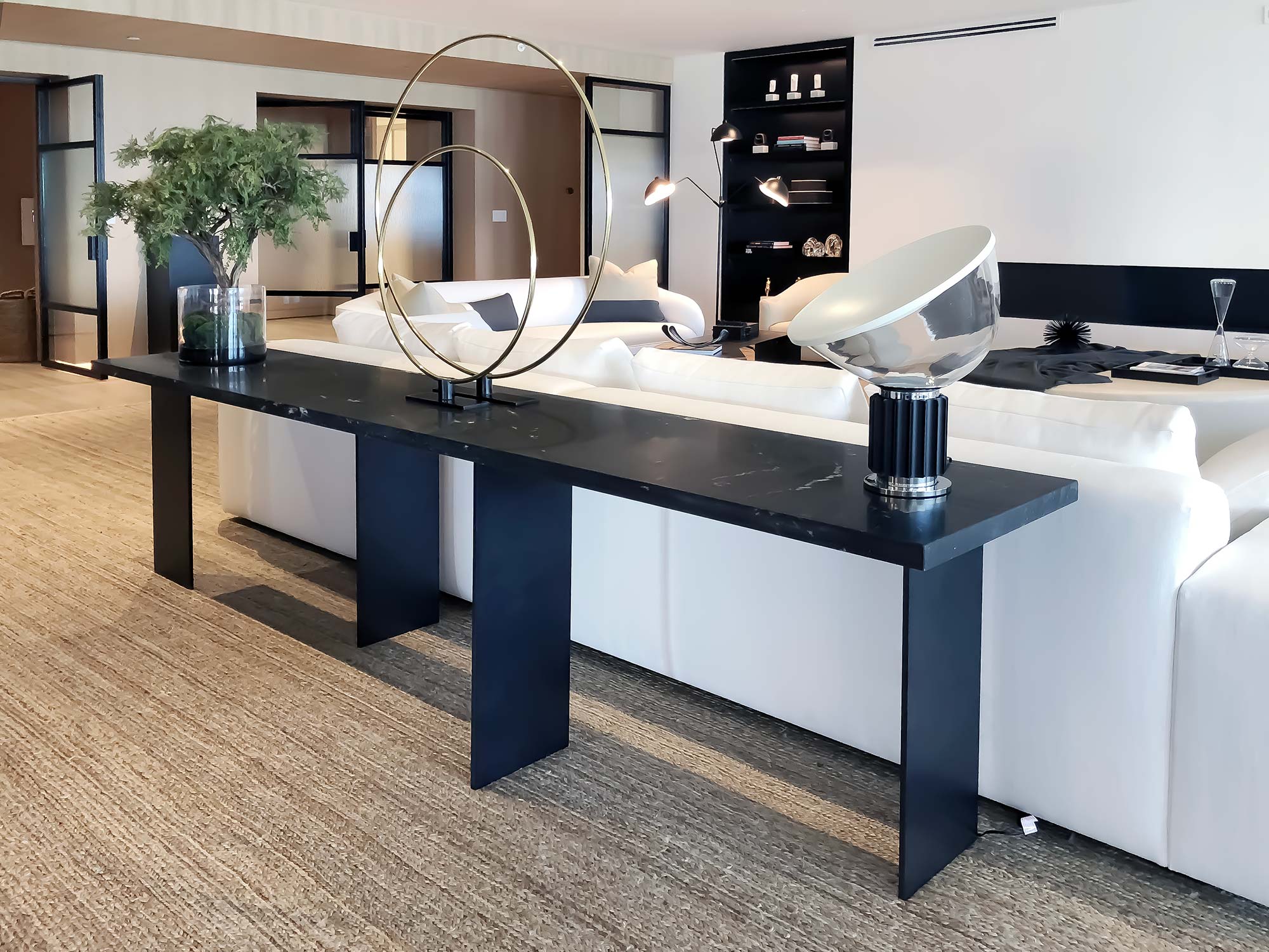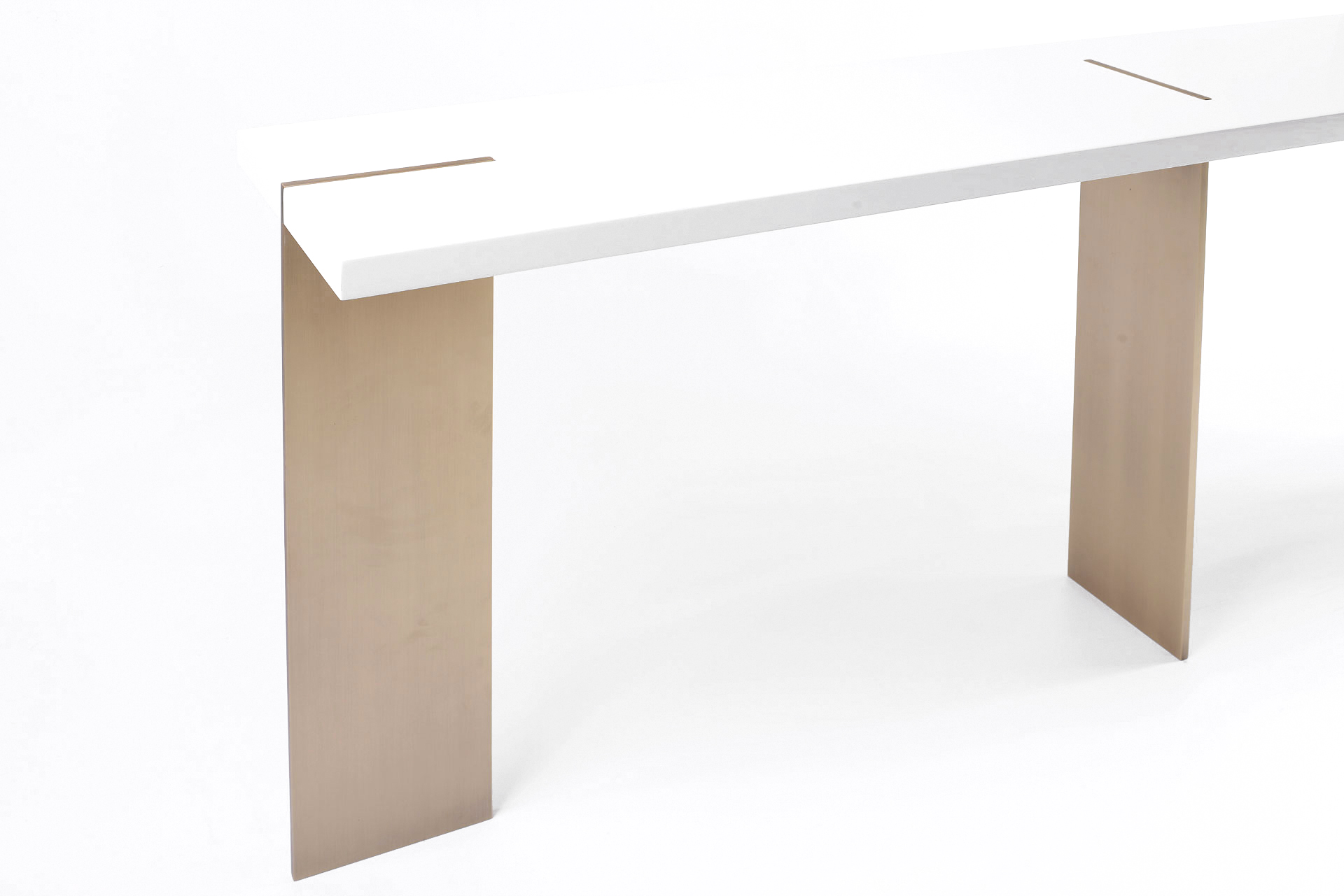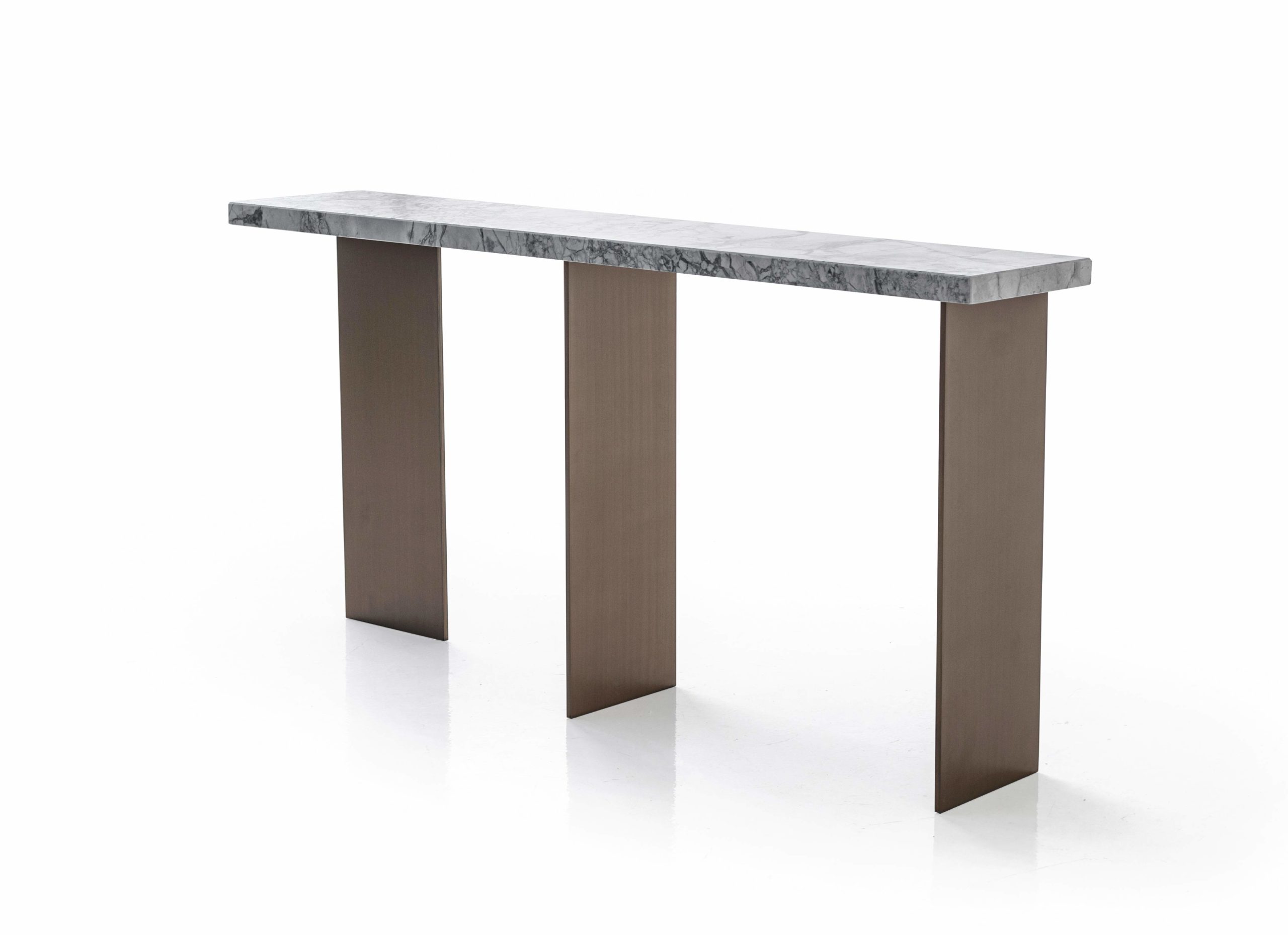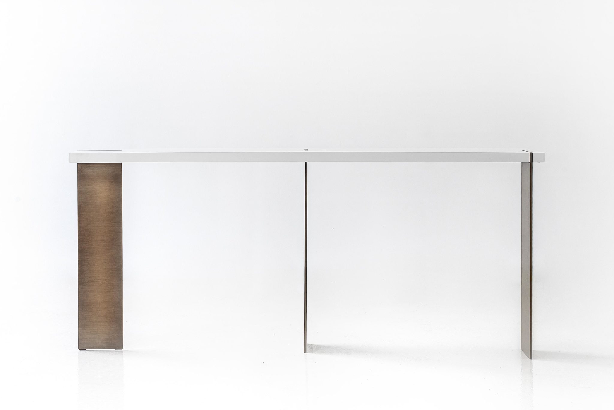 Top in wood, lacquer or marble. Metals legs exposed on the wood top highlights the expert craftsmanship.
