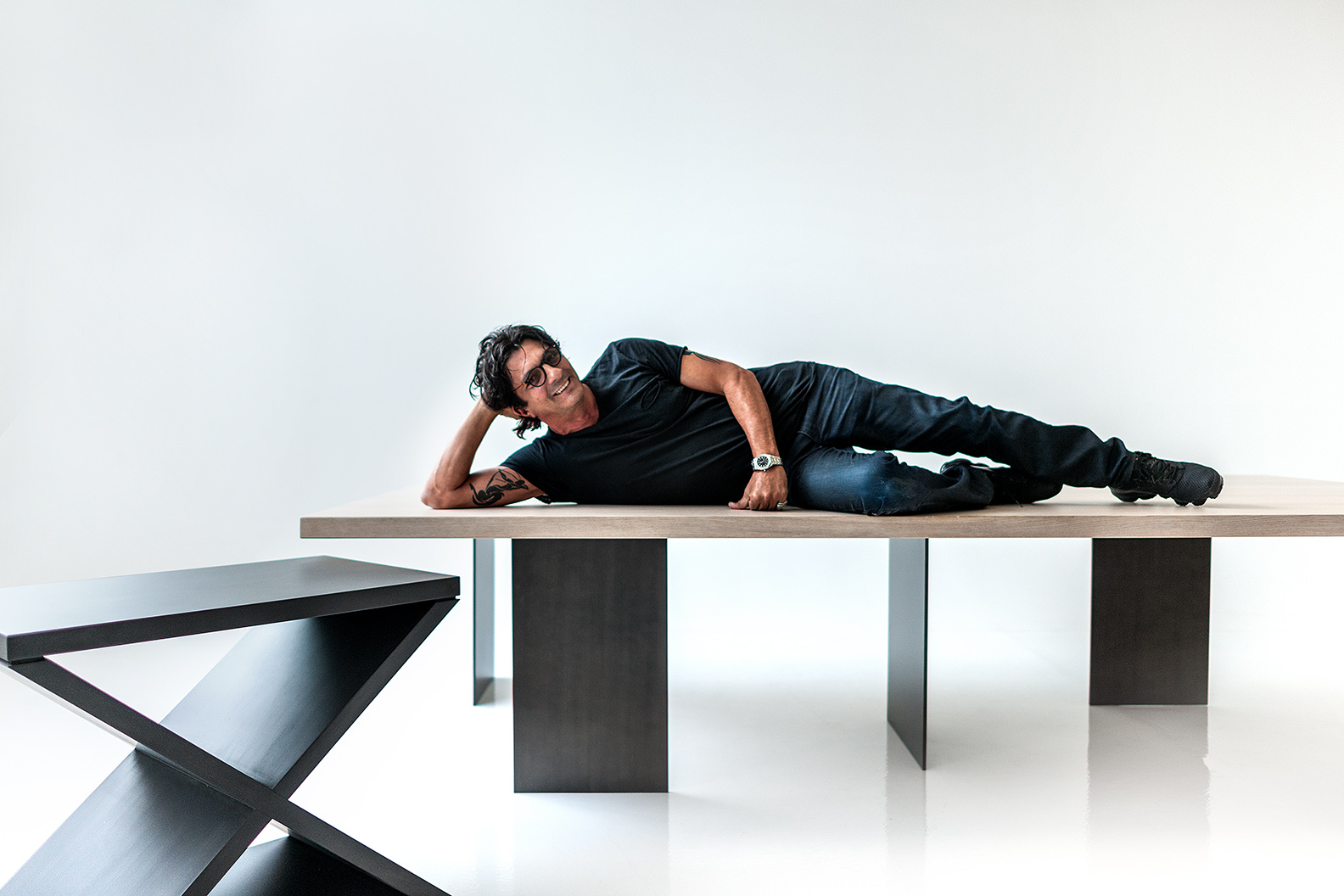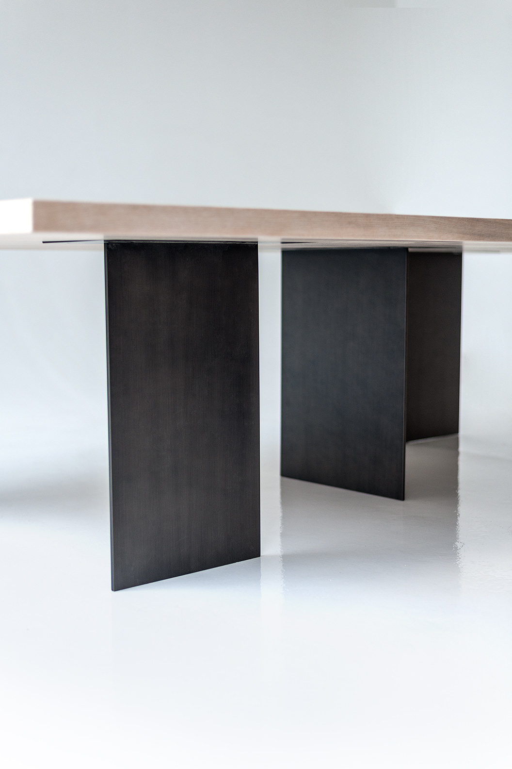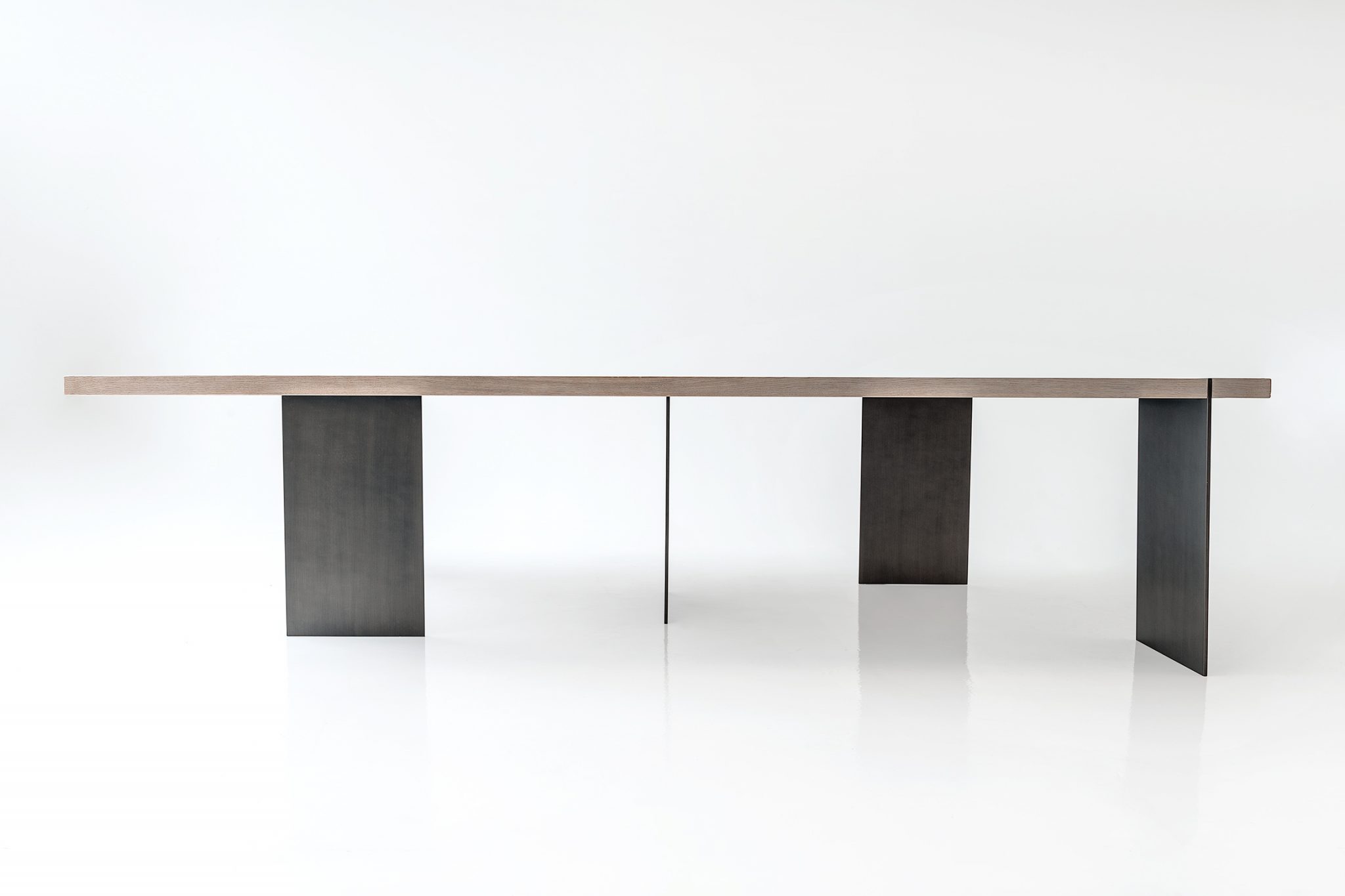 Part of the edizioni collection, rich materials with its original design adds elegance and luxury to any interior, metals legs exposed on the wood top highlights the expert craftsmanship.