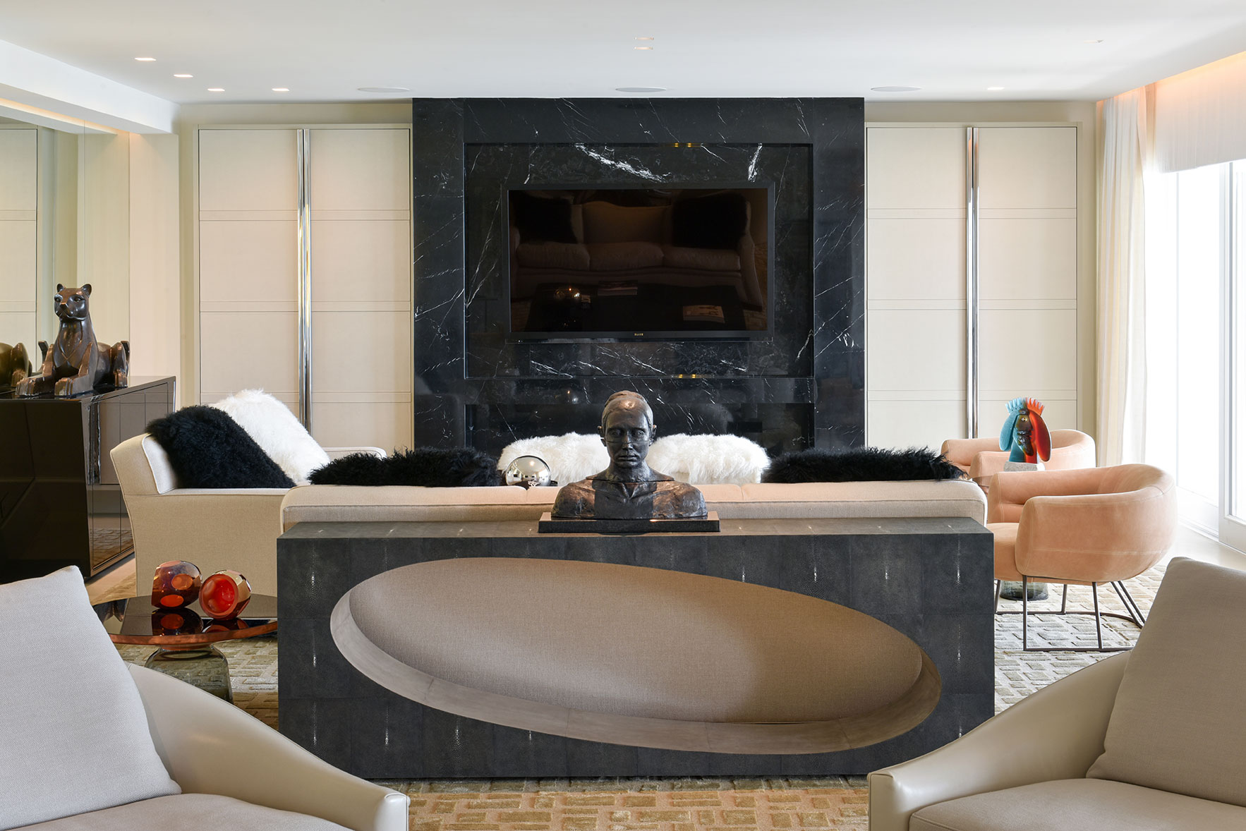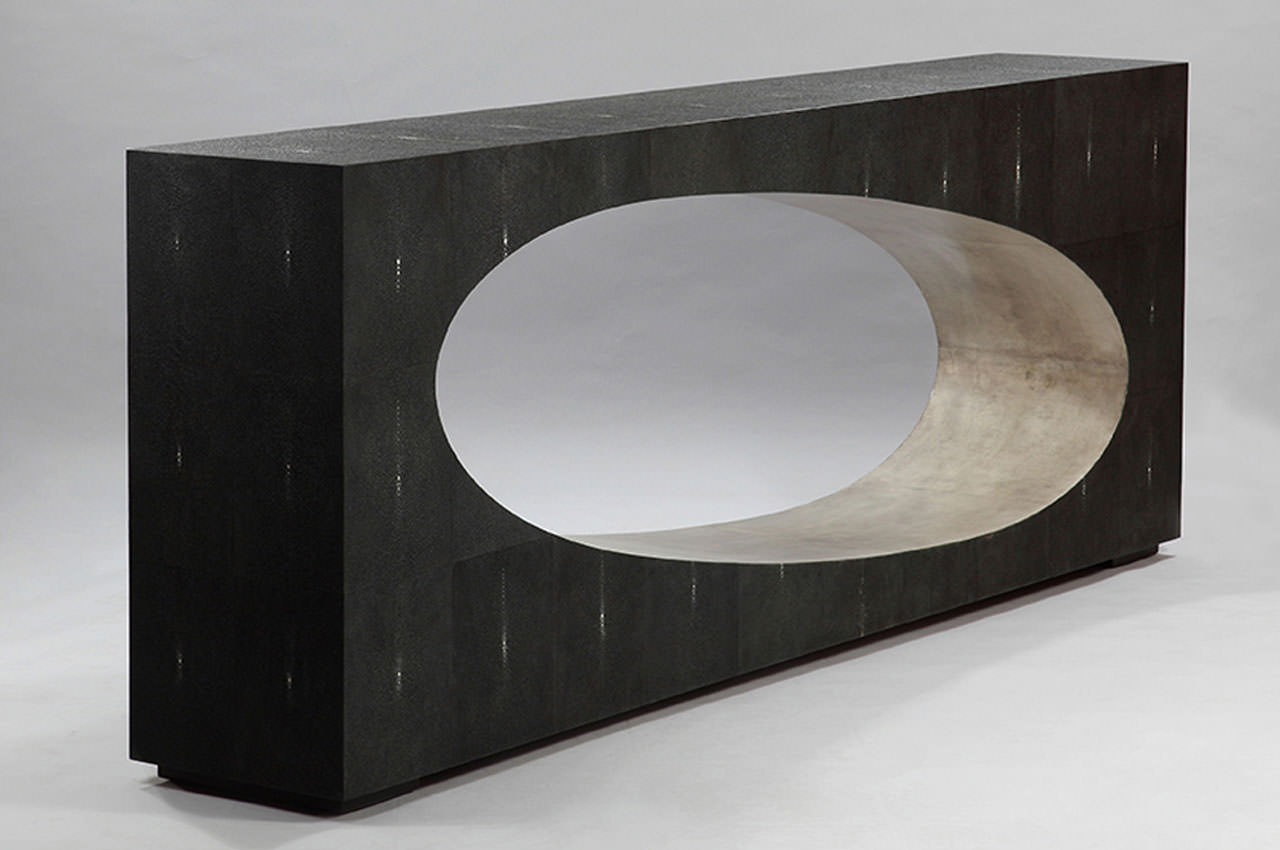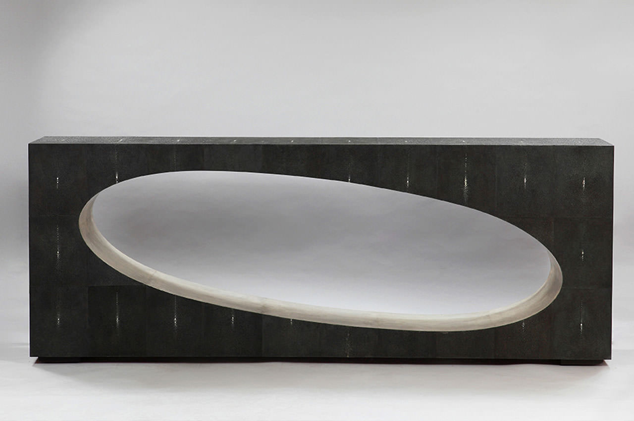 The natural variation in skin color and thickness gives rise to natural variations during the dyeing process. Shagreen is a highly labor-intensive material and is often described as the most luxurious material amongst furniture aficionados. Our furniture is made using the skills of the past and with a design aesthetic that dovetails beautifully with our wider collection of furniture.