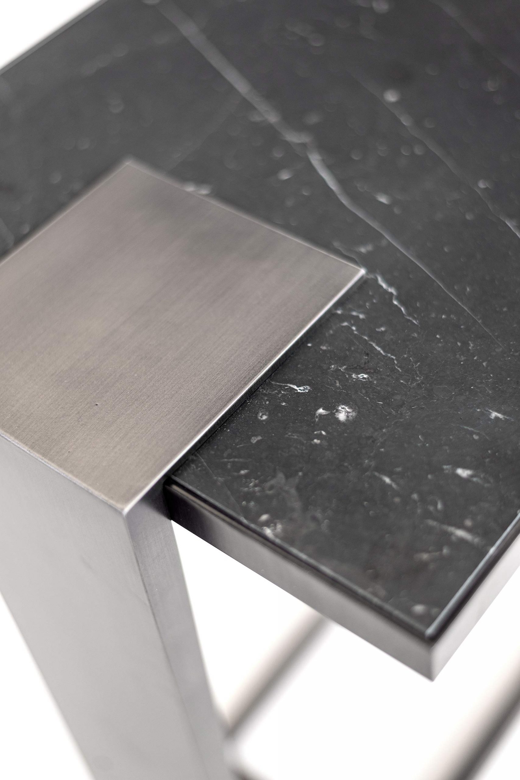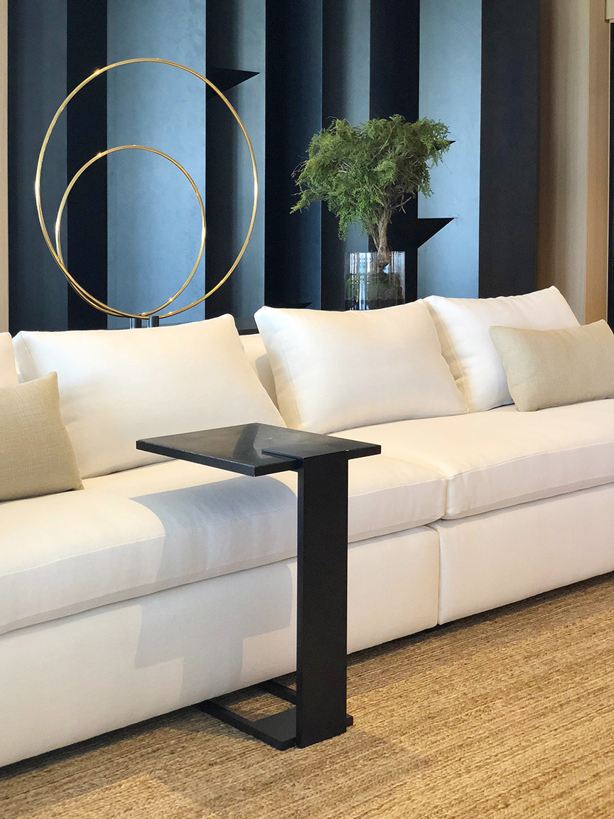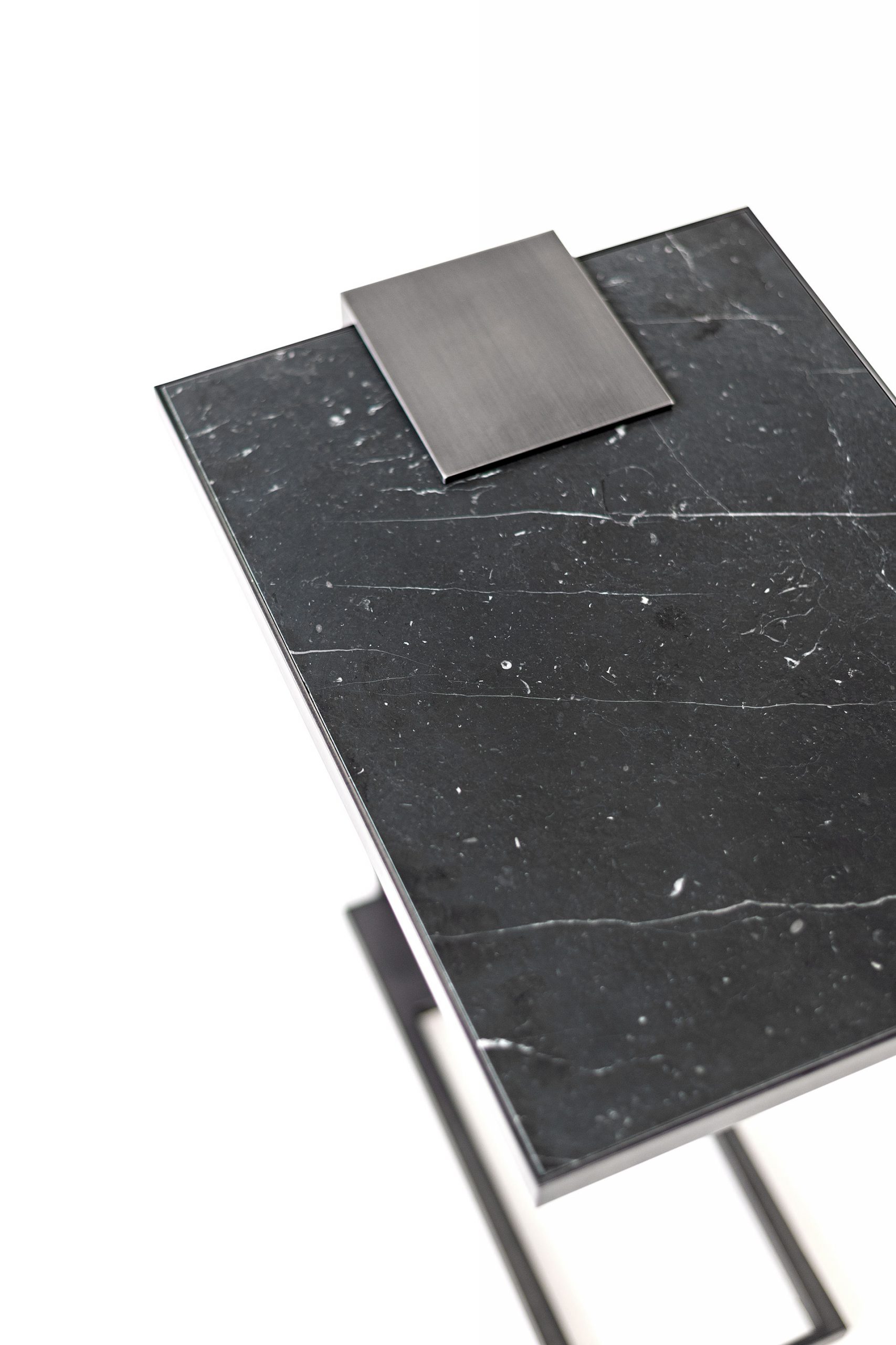 Sofa side table available in all Robicara metal patinas and marbles, perfect fit for any residential and commercial interiors, available with glass top