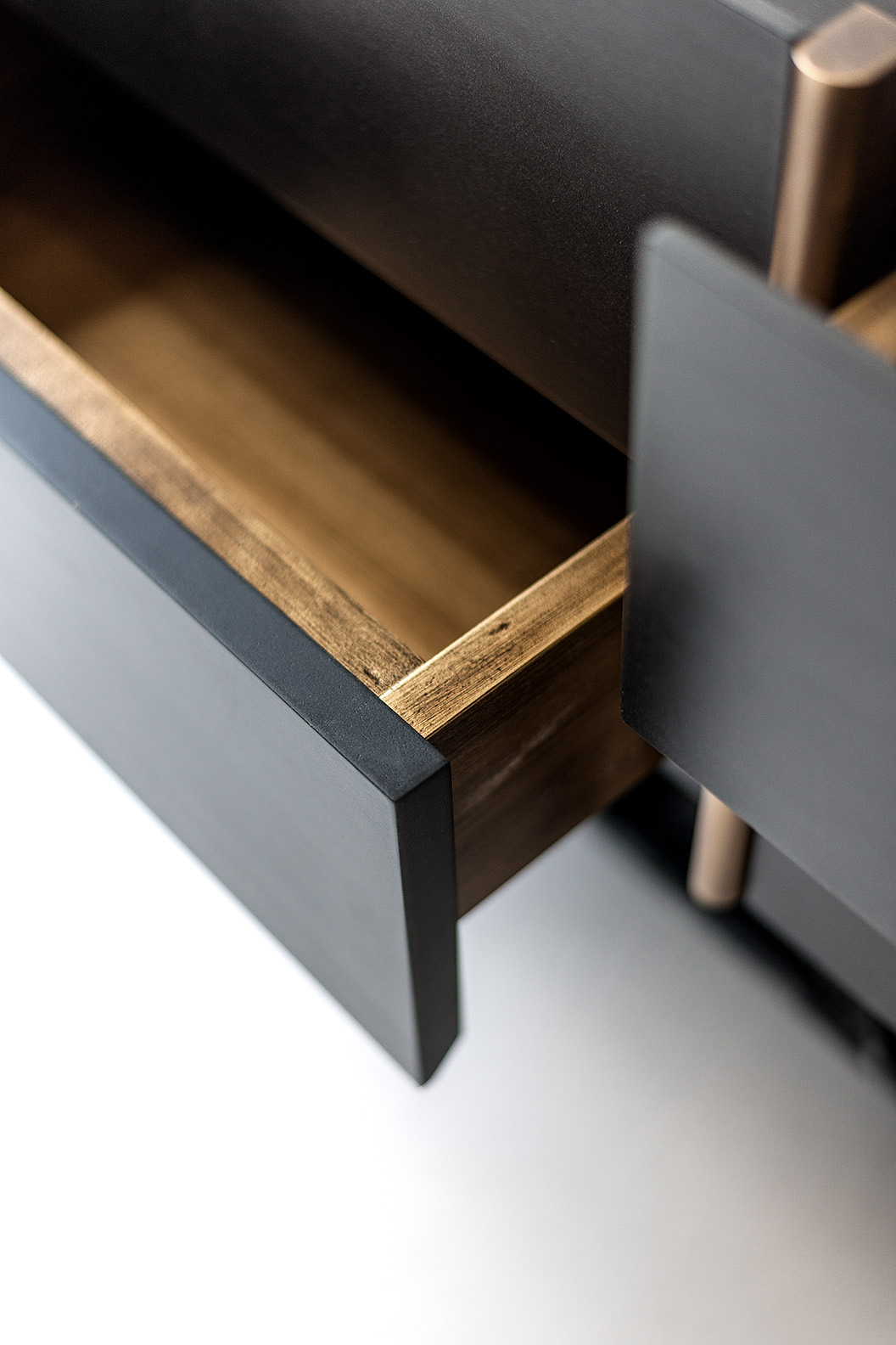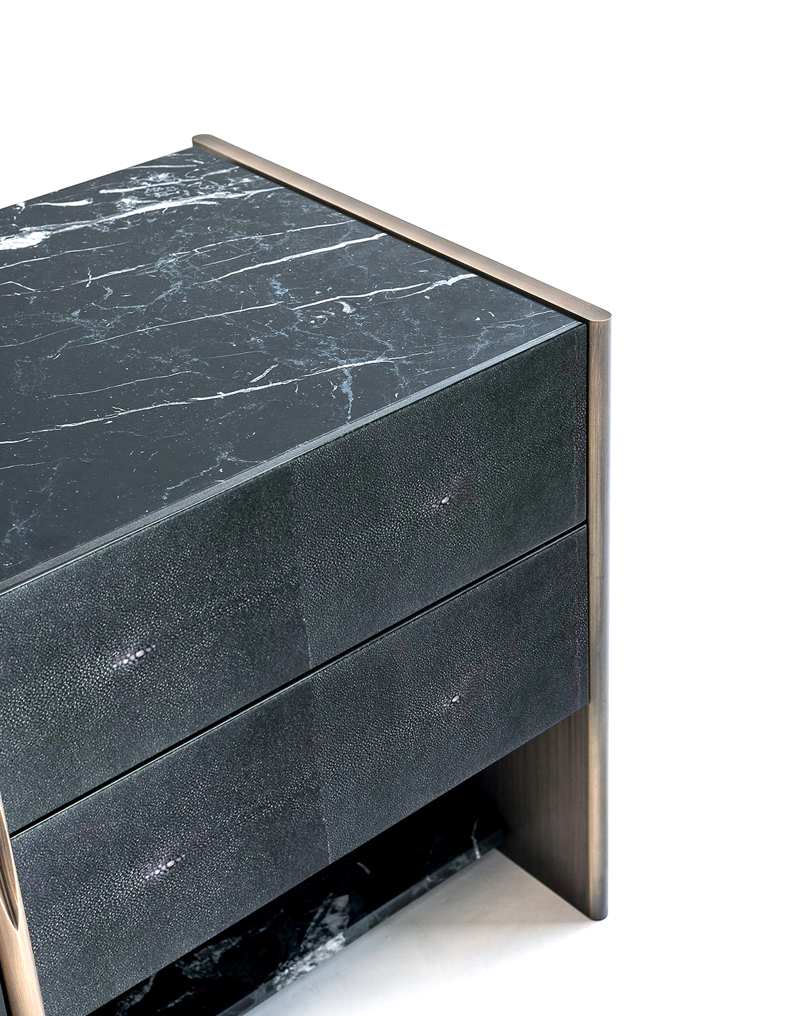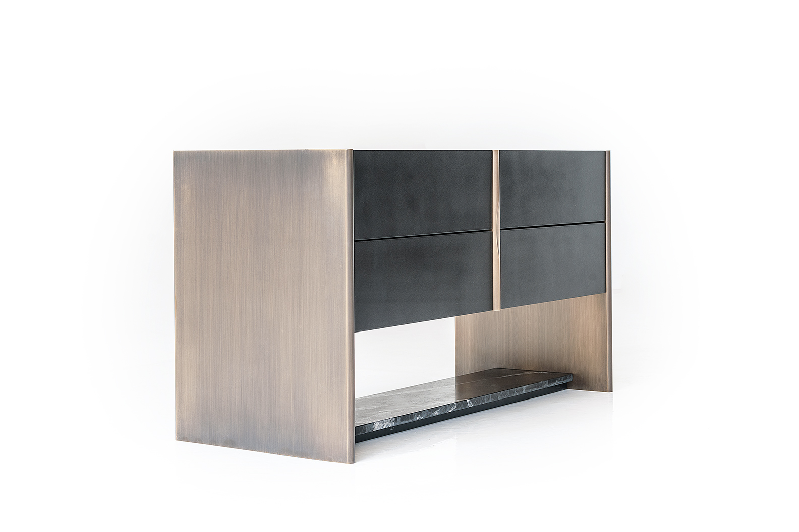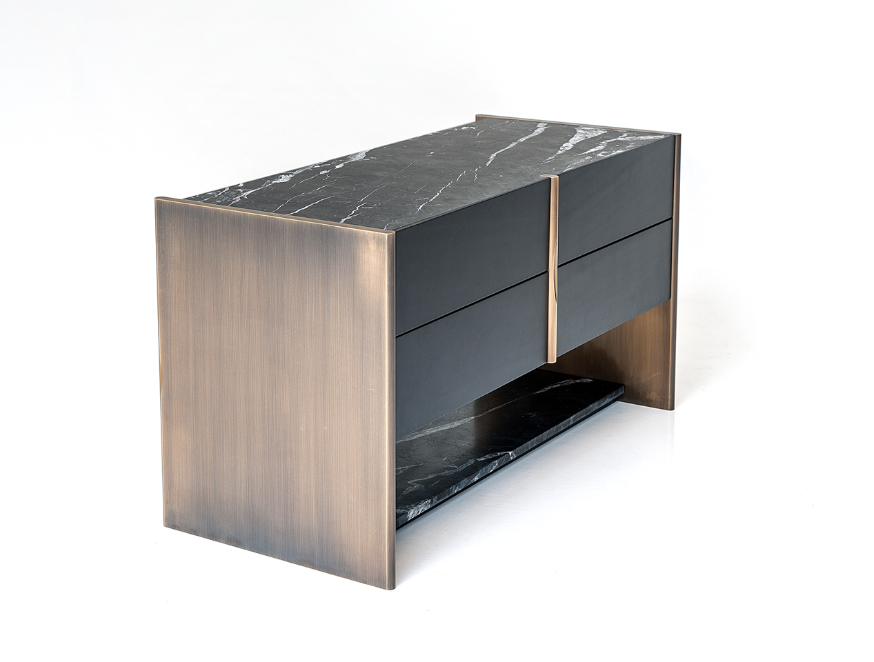 Indulge in luxury with our rich nightstand, a harmonious blend of exceptional finishes. The solid metal patina sets the stage for opulence, while laser-cut decorative handles add a touch of intricate elegance. The interiors and door, available in a special metal liquid lacquer or wood, offer a personalized touch. It’s the details that make this piece truly memorable and undeniably unique. Elevate your bedroom with sophistication and style.