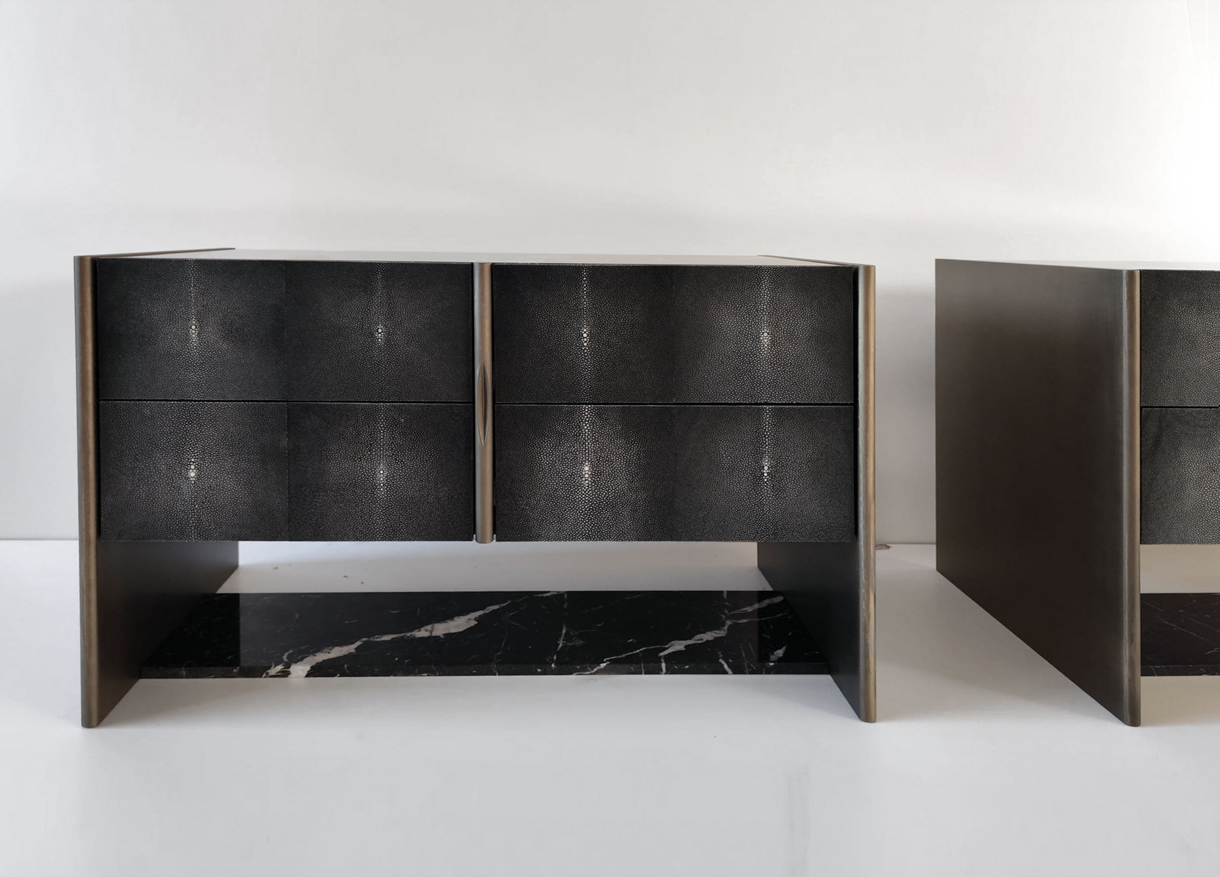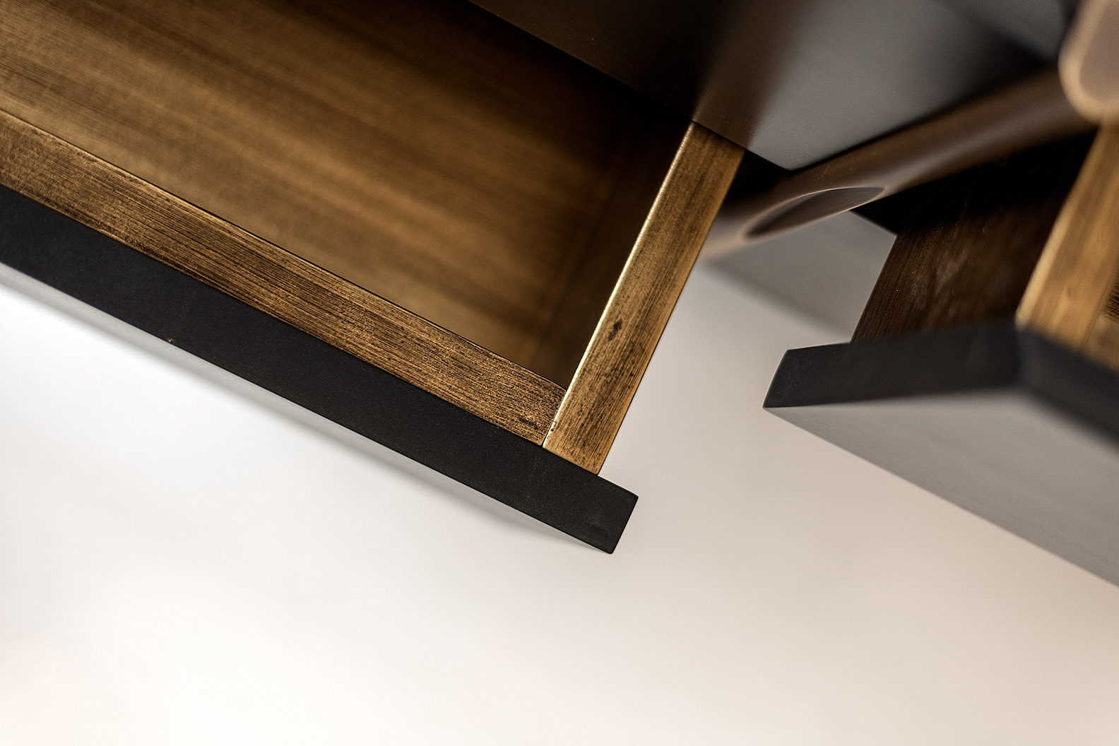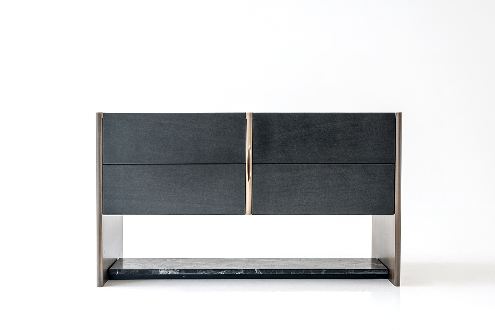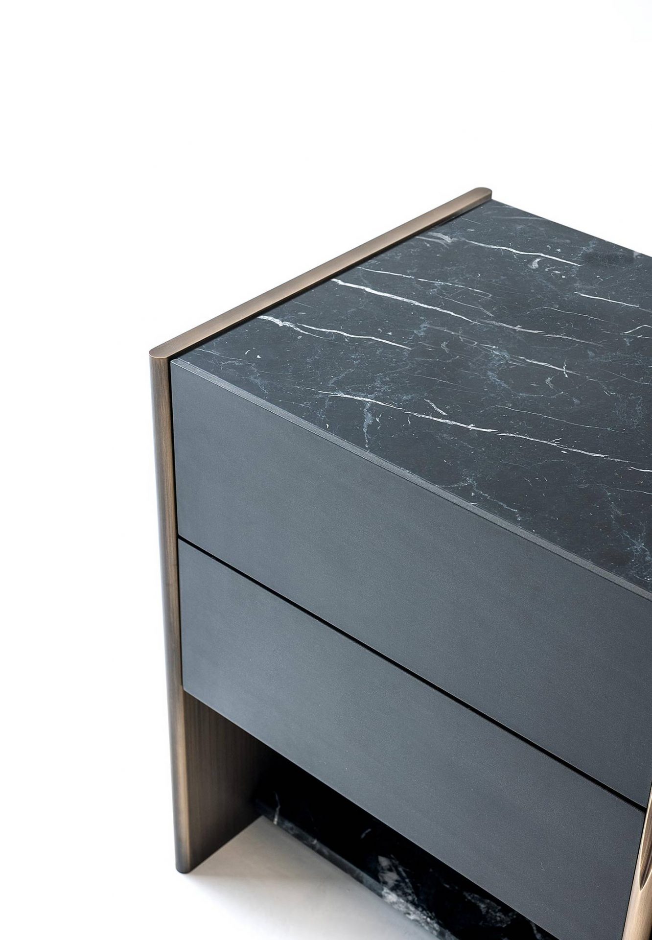 Indulge in luxury with our rich nightstand, a harmonious blend of exceptional finishes. The solid metal patina sets the stage for opulence, while laser-cut decorative handles add a touch of intricate elegance. The interiors and door, available in a special metal liquid lacquer or wood, offer a personalized touch. It’s the details that make this piece truly memorable and undeniably unique. Elevate your bedroom with sophistication and style.