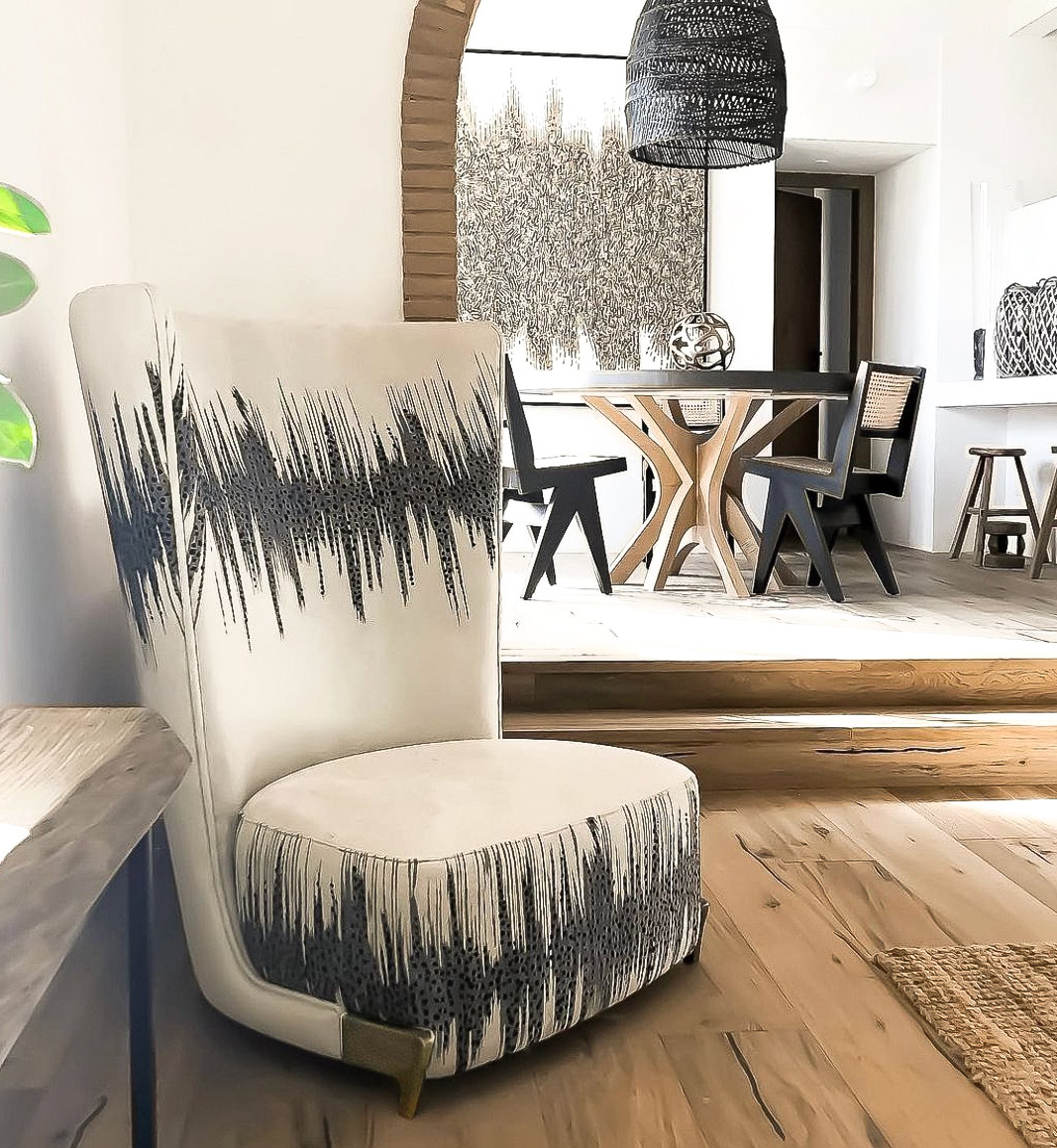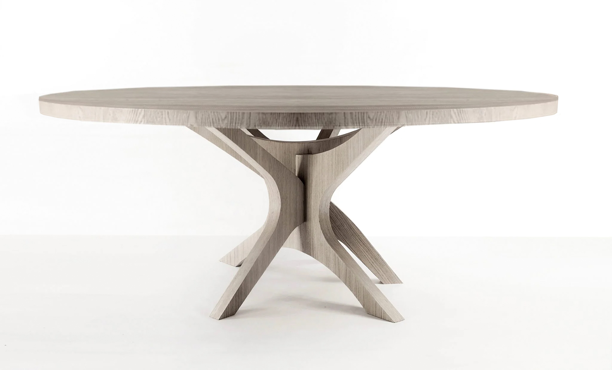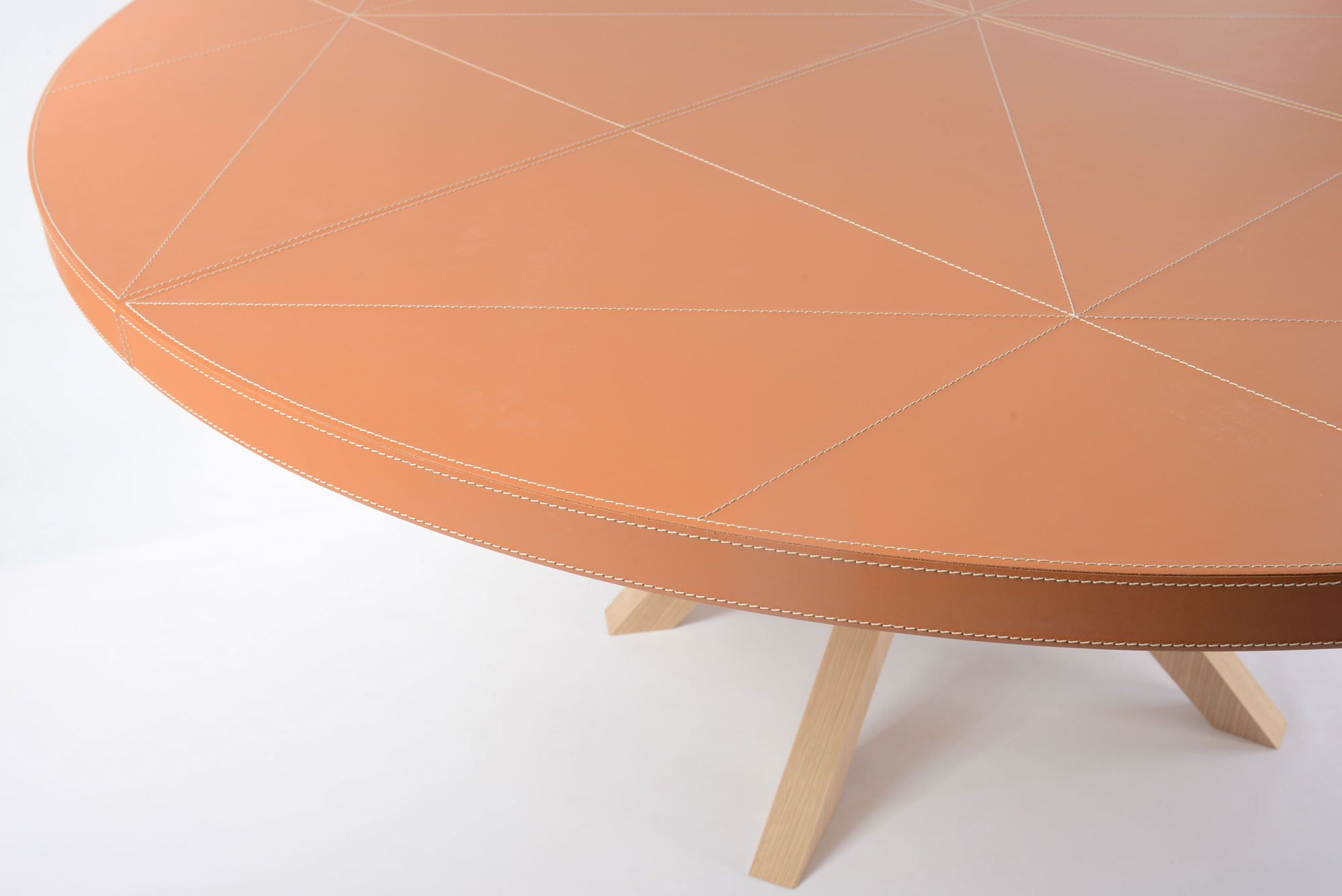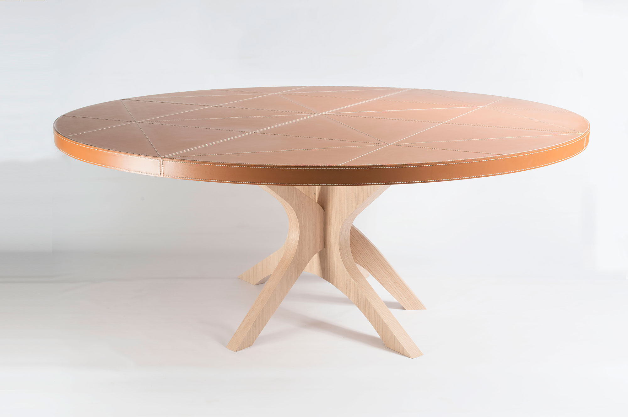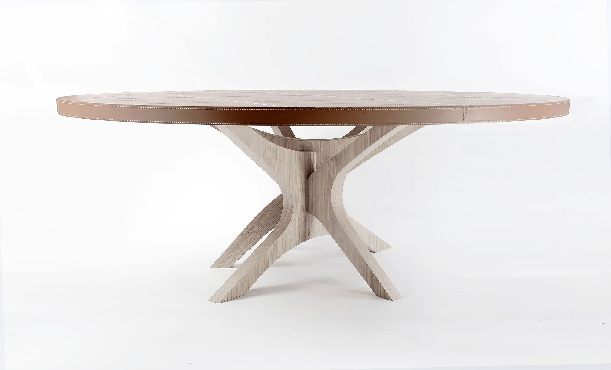A sophisticated organic design made of a solid European oak, star shaped base and top can be upholstered in leather or any otherRC materials