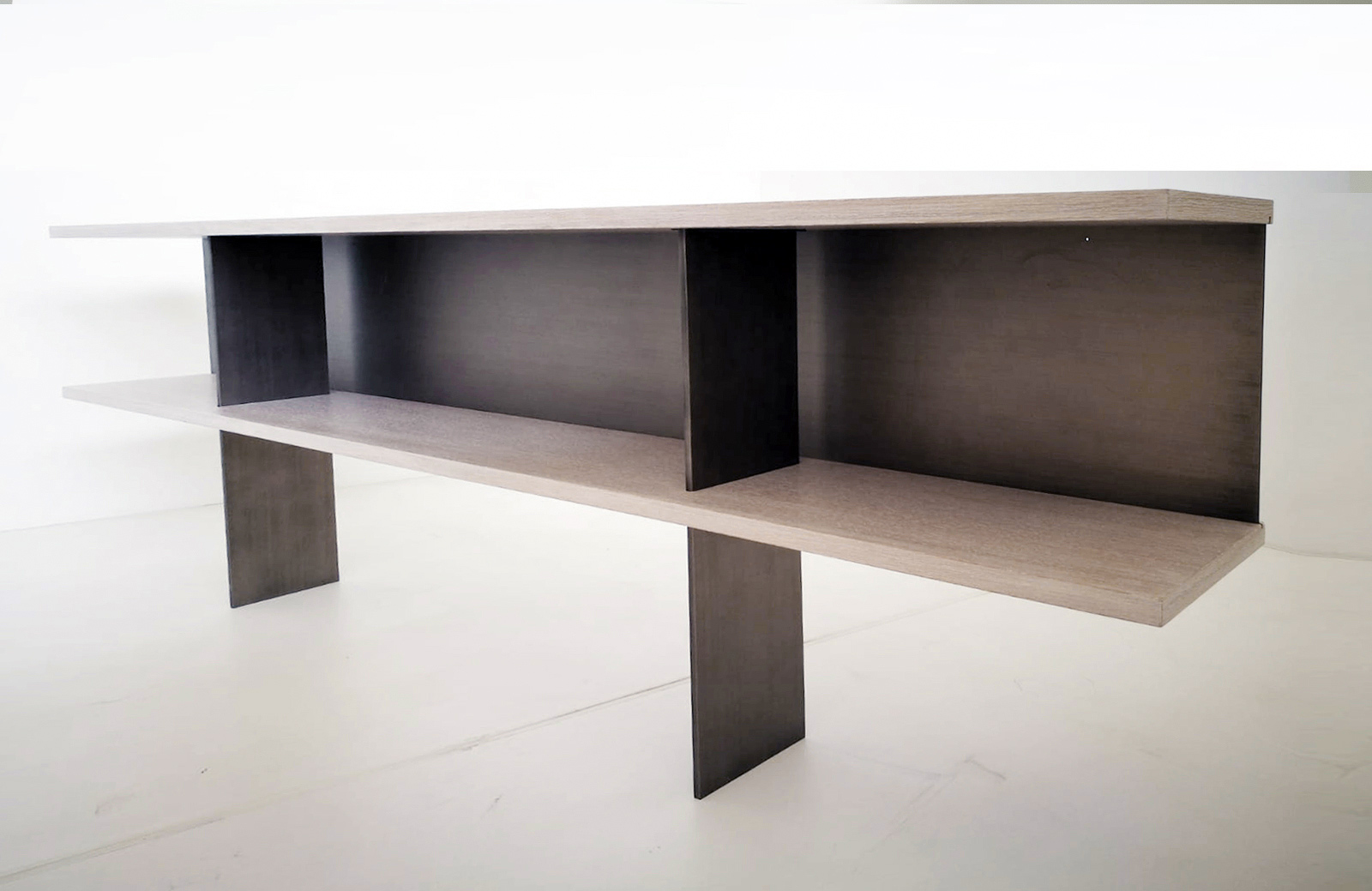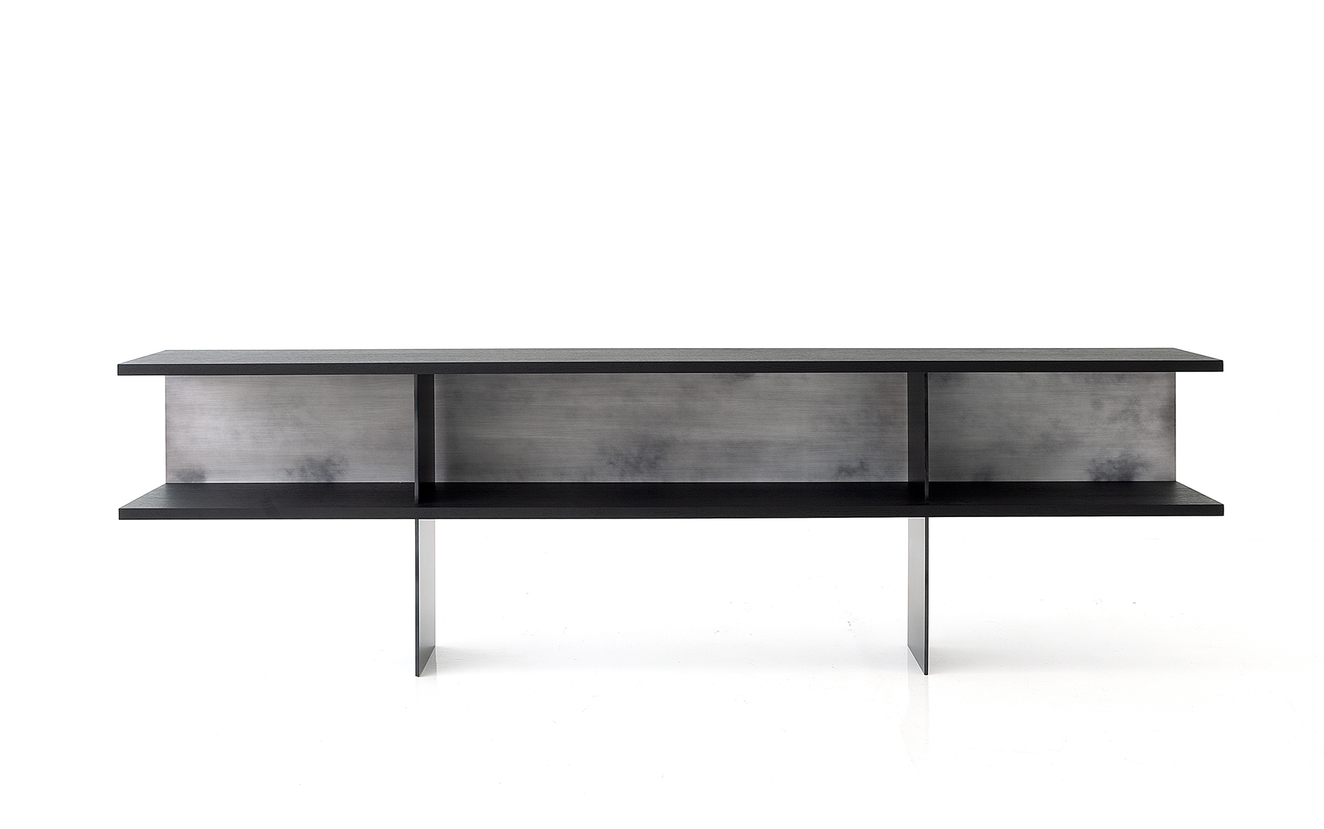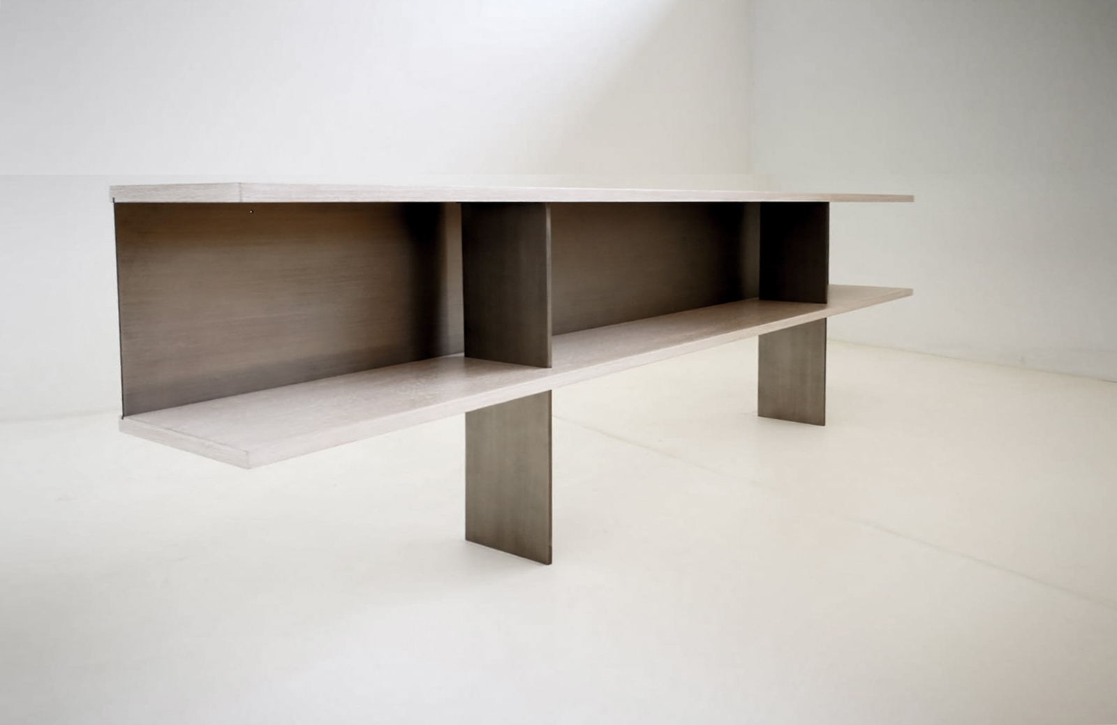 The Zoe Console is offered with all Robicara woods finishes with the bases and back panel, available in all Robicara metal patinas.