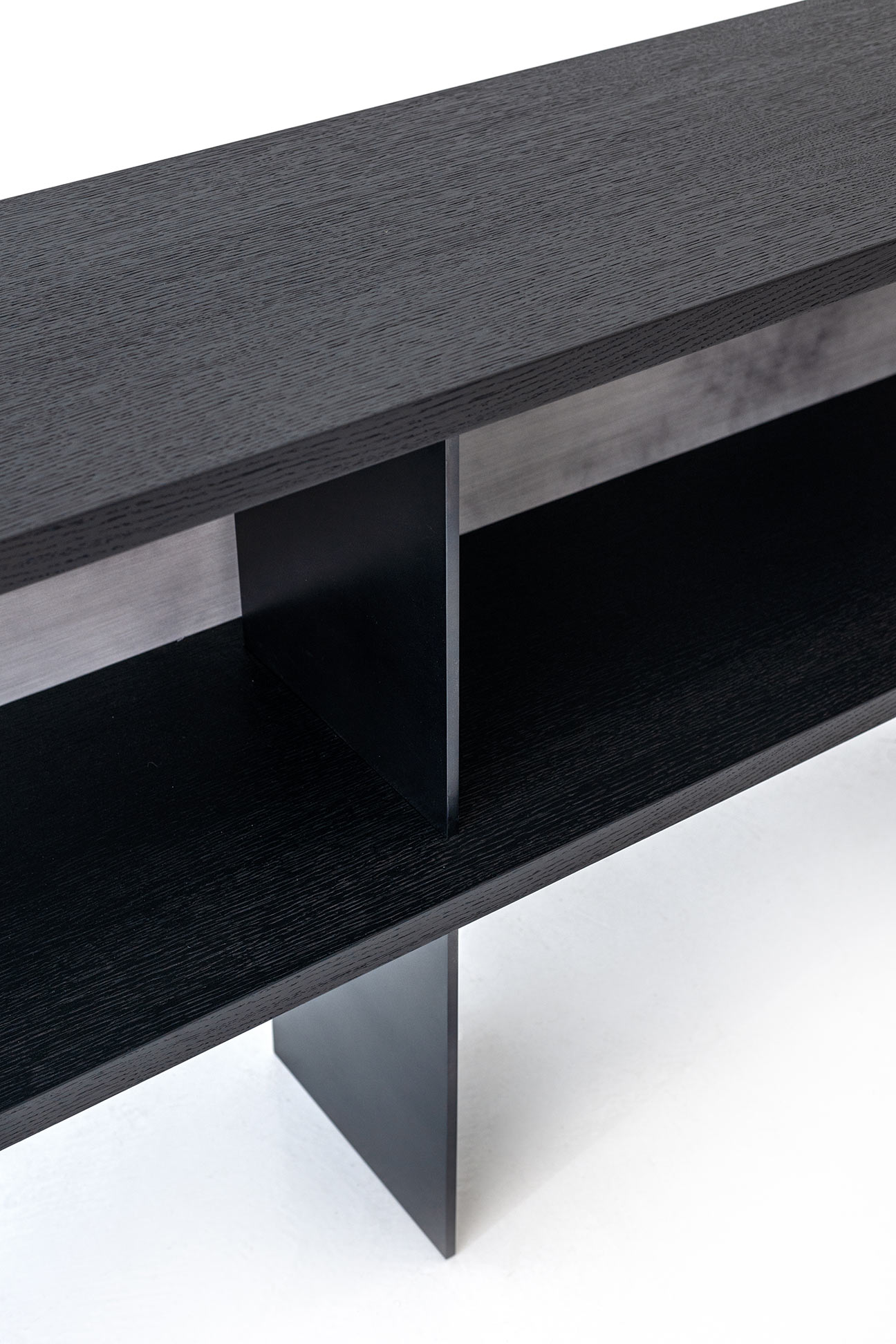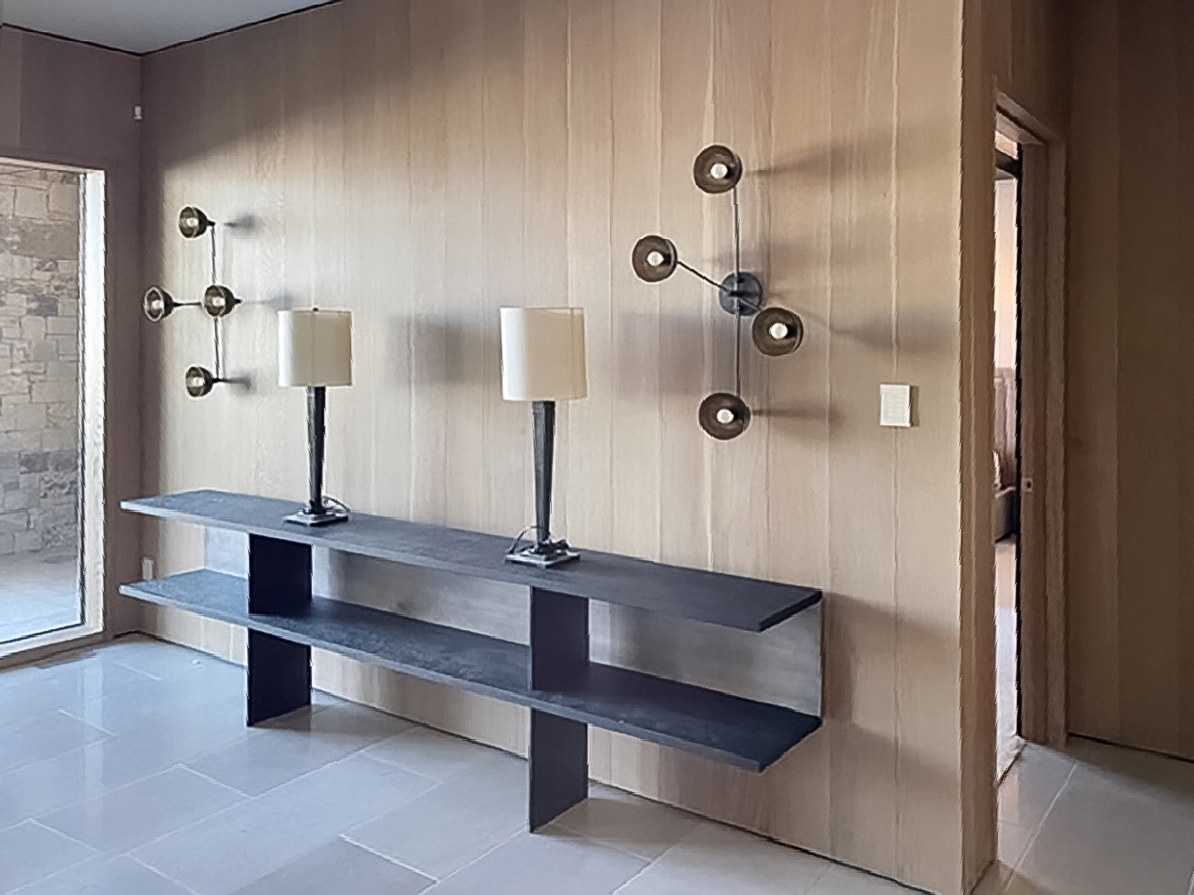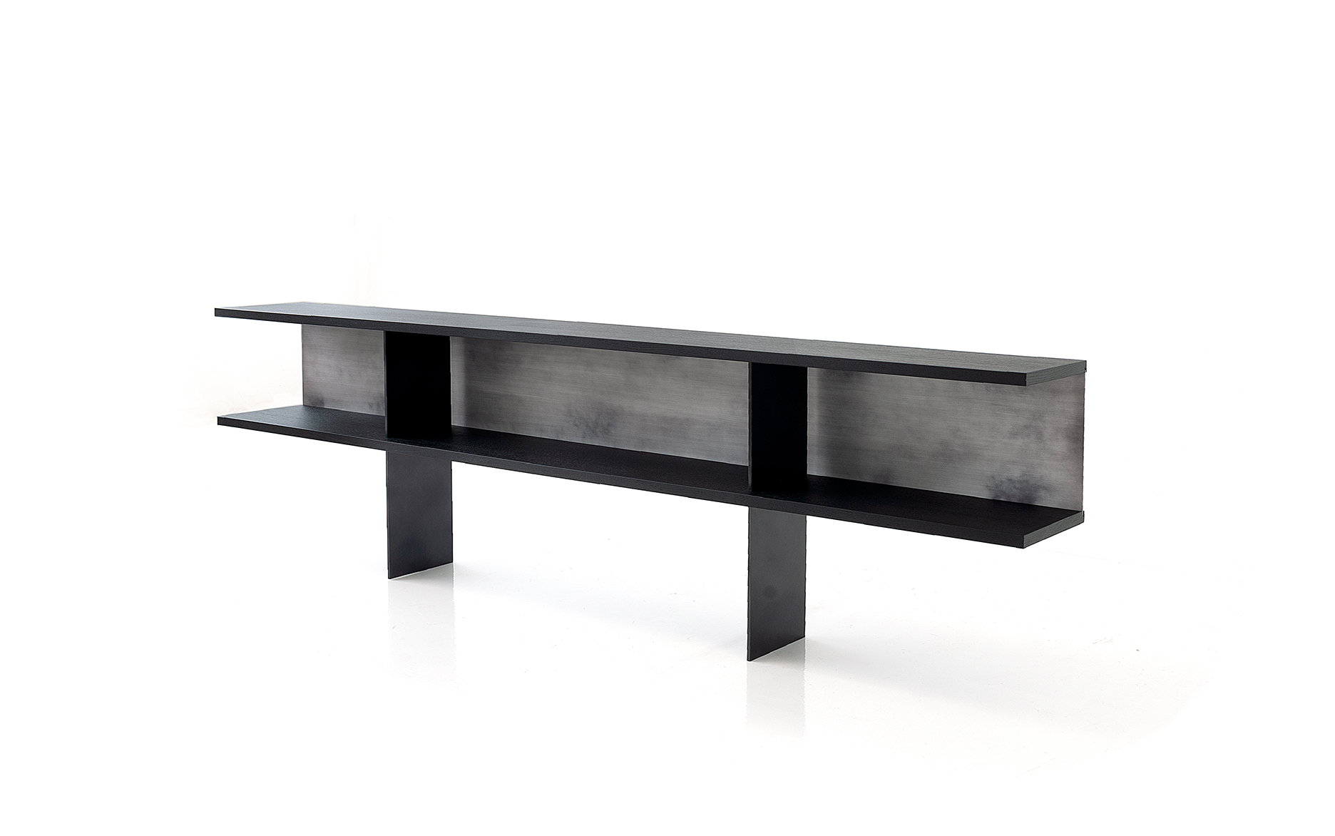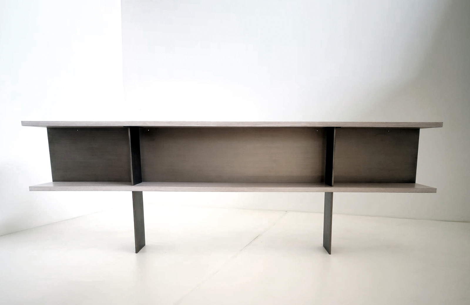 The Zoe Console is offered with all Robicara woods finishes with the bases and back panel, available in all Robicara metal patinas.